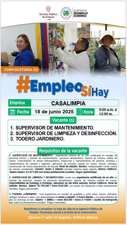 Casa de Justicia Tocancipá: 57 (601) 5550737 Opción 1