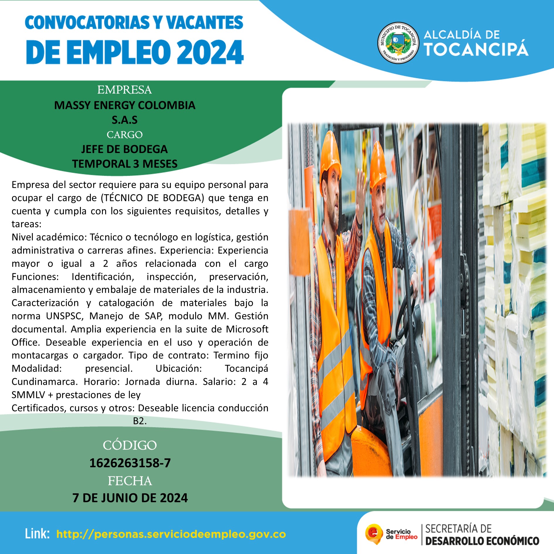 ¡Si cuentas con el perfil y la experiencia, no dudes en Aplicar por la plataforma de Servicio Publico de Empleo con el código que aparece en la Imagen! O comunícate con la agencia de servicio publico de empleo y te colaboramos en postularte.