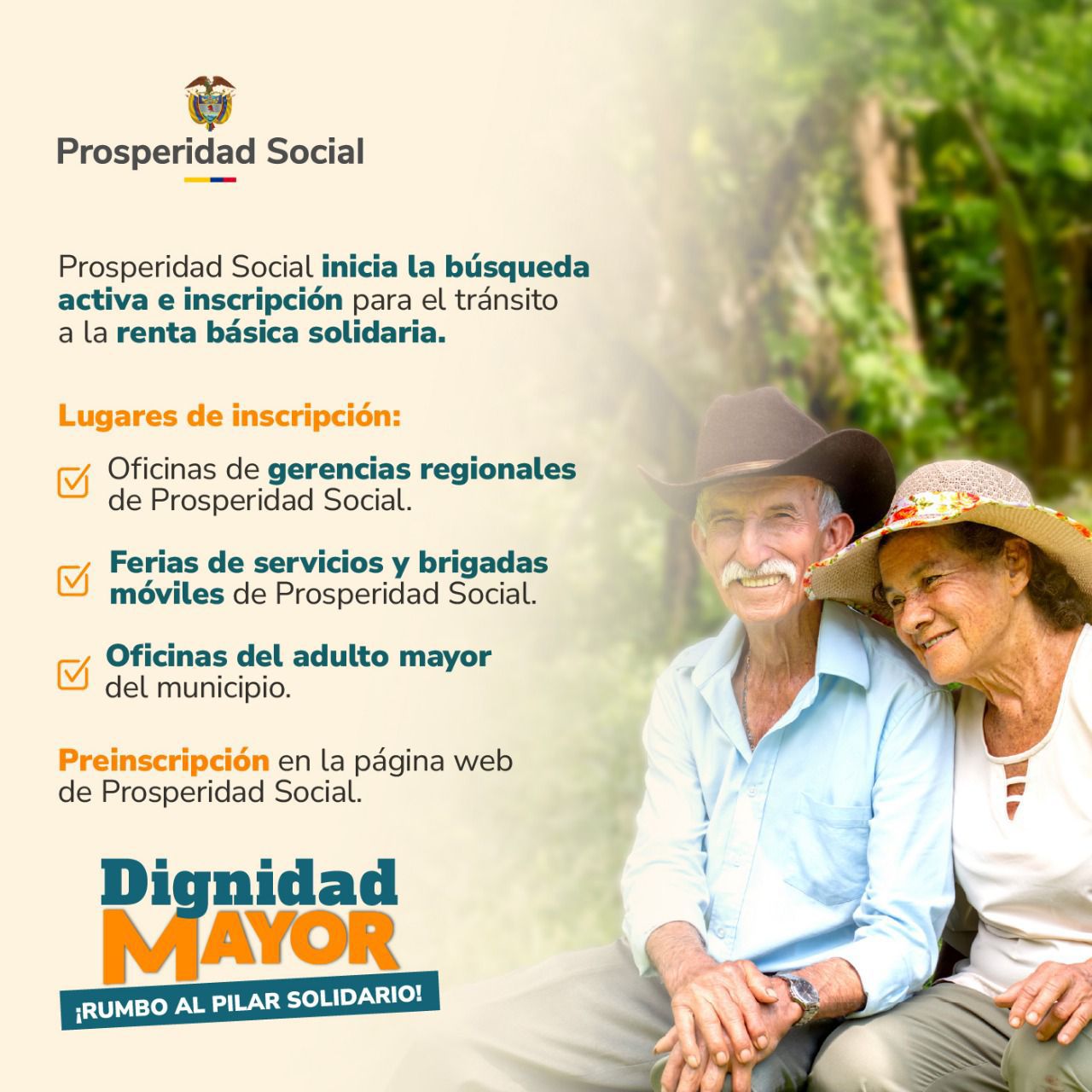 PROSPERIDAD SOCIAL INICIA INSCRIPCIONES PARA LA RENTA BÁSICA SOLIDARIA CON EL PROGRAMA DIGNIDAD MAYOR