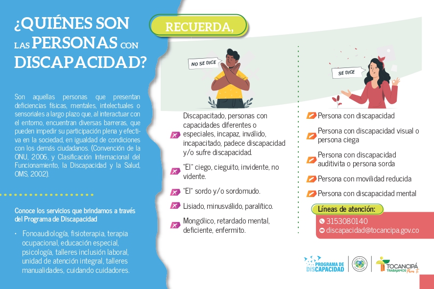 Líneas de atención: 3153080140 y discapacidad@tocancipa.gov.co