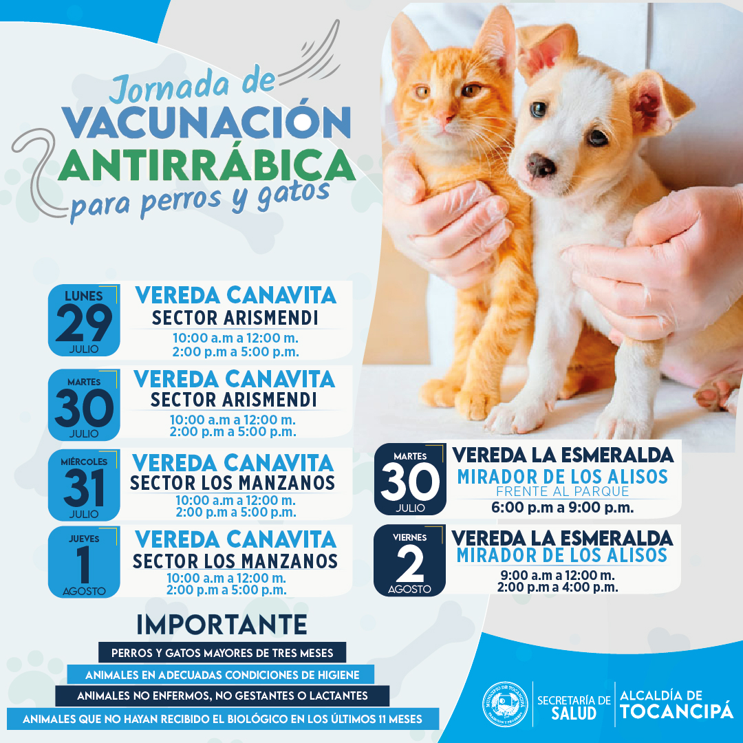 Llega el momento de vacunar a nuestros perritos 🐶 y gatitos 🐱 contra la rabia.