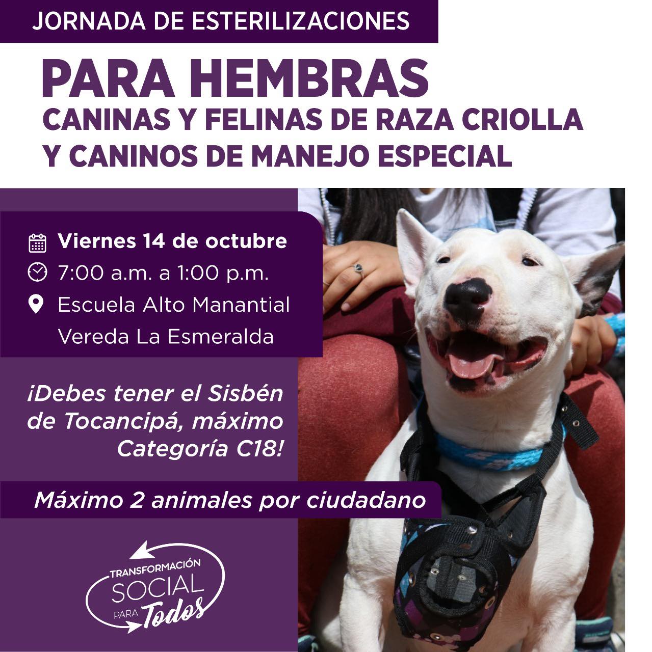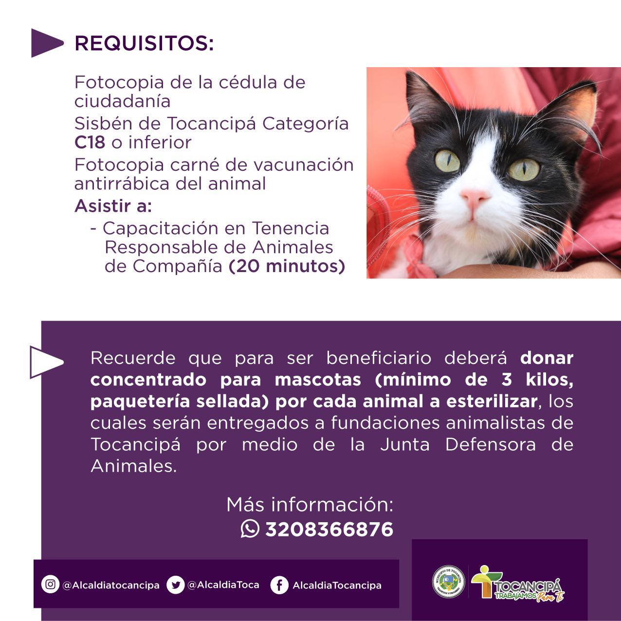Llevar los documentos descritos en la imagen. No se operan: hembras en celo, hembras gestantes, hembras recién paridas, animales enfermos, emaciados, caquécticos.