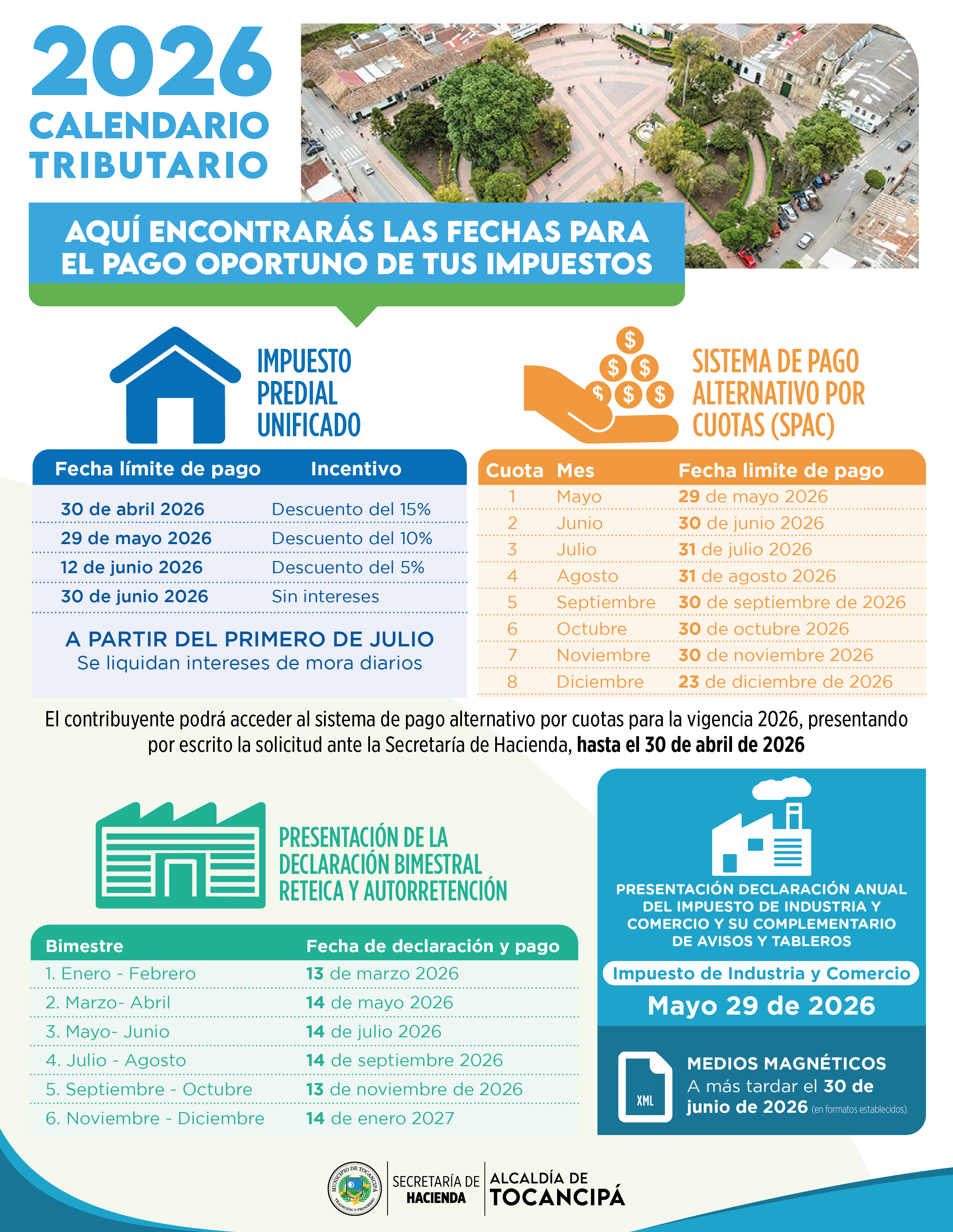 ✅Consulta la Resolución 1307 del 2025 de la Secretaría de Hacienda en el siguiente enlace: https://www.tocancipa-cundinamarca.gov.co/recursos_user/editores/1420/2025/Resolución_1307_del_2025_CALENDARIO_TRIBUTARIO.pdf