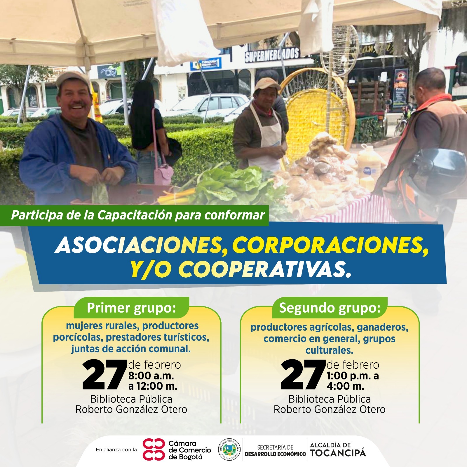Pieza gráfica para informar sobre capacitación para conformar asociaciones, corporaciones y/o cooper