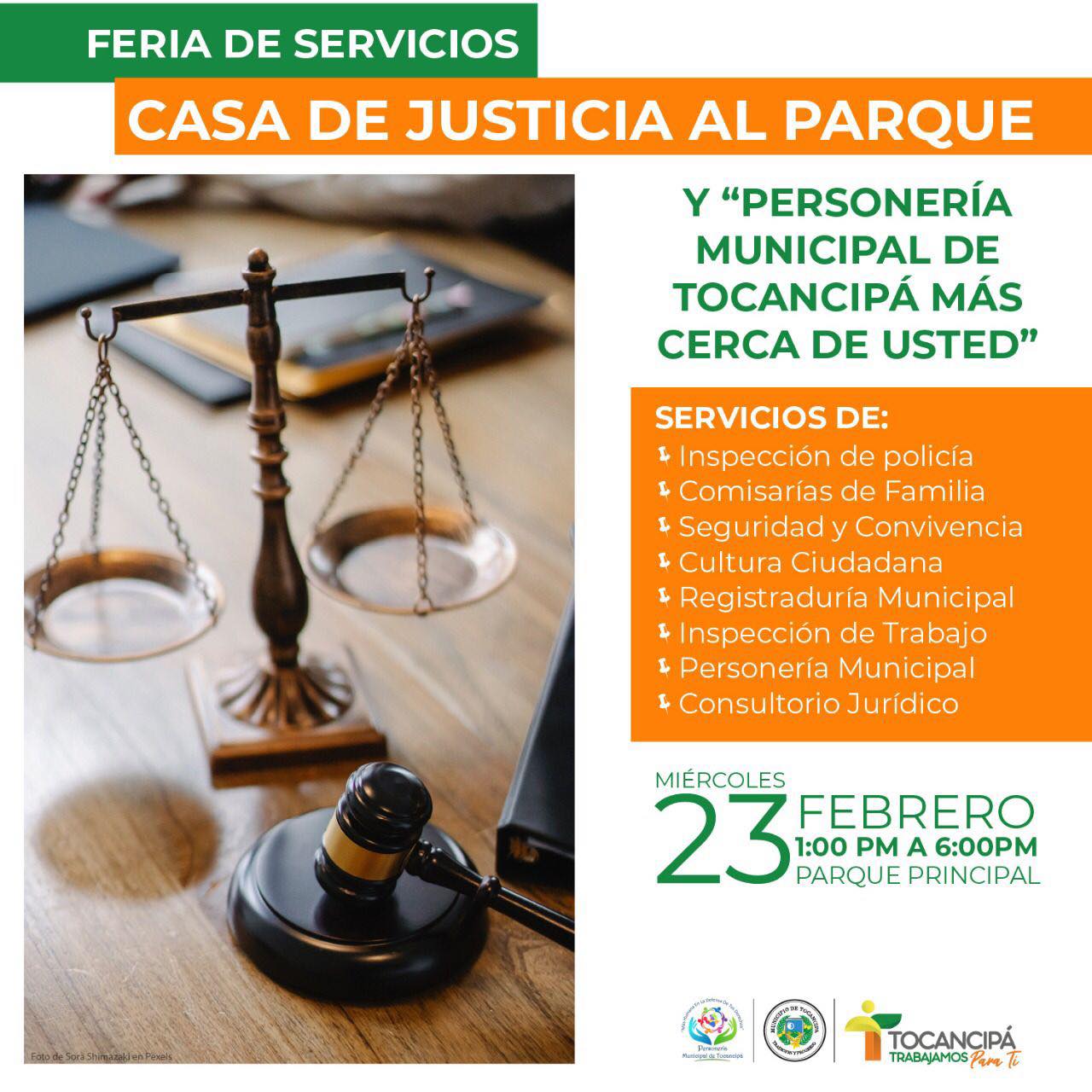 Invitamos a la comunidad a participar en la gran feria de servicios que organizamos entre la Casa de Justicia y la Personería Municipal.