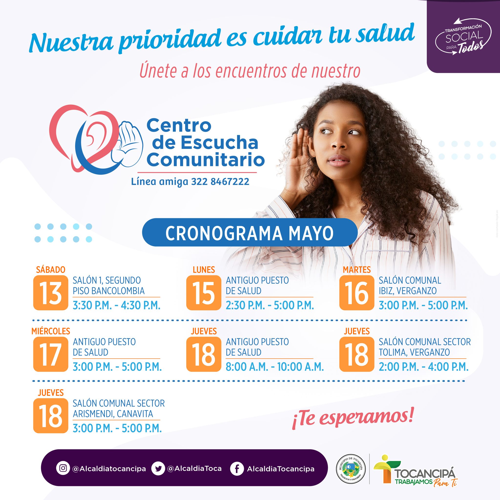 Para cuidar la salud mental una de las acciones más importantes y valoradas es la escucha. Nuestra Secretaría de Salud invita a la comunidad a ser parte del Centro de Escucha dónde buscamos redes de apoyo comunitarias para cuidar de la salud mental de los tocancipeños.