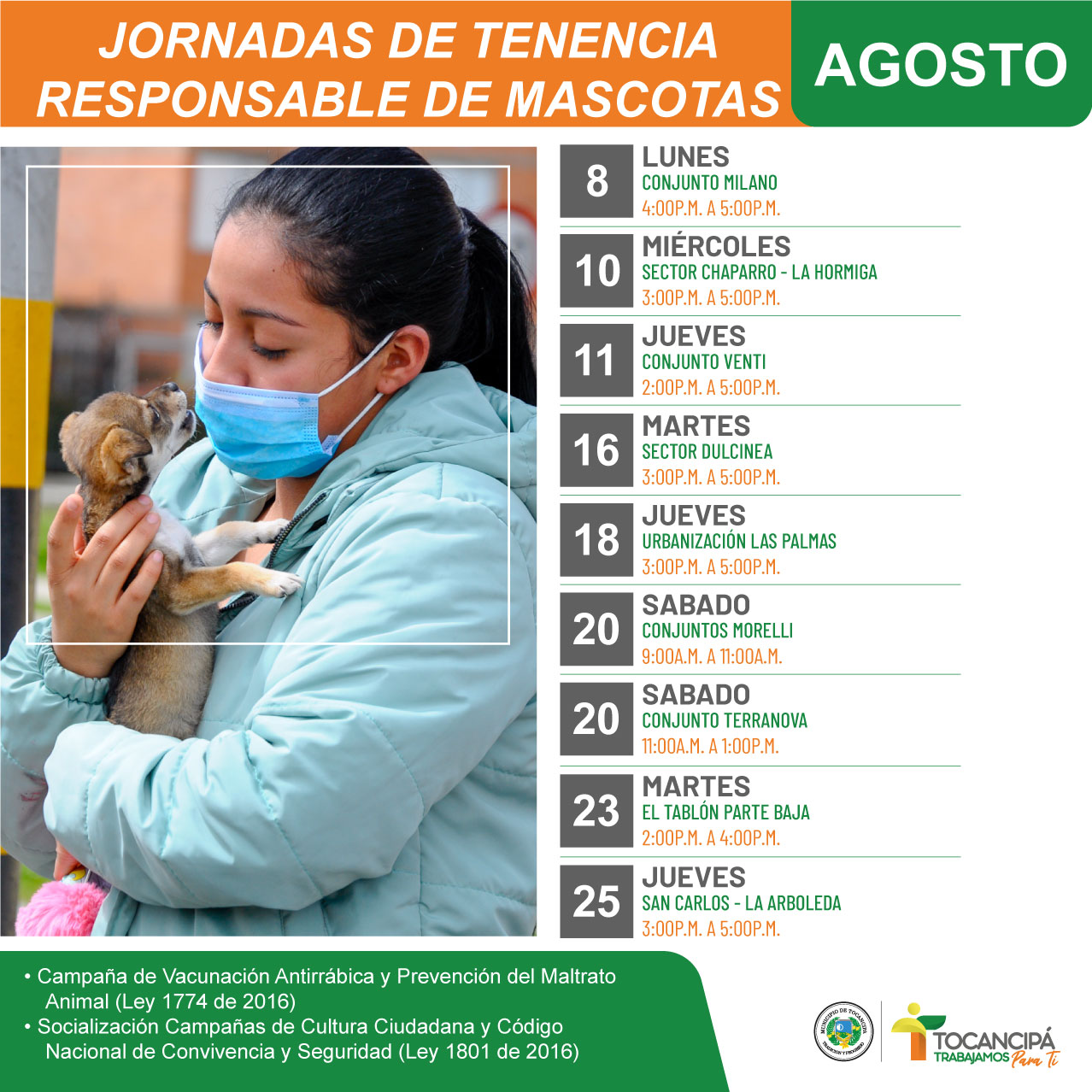 Conozca el cronograma del mes de agosto para las jornadas de tenencia responsable de mascotas
