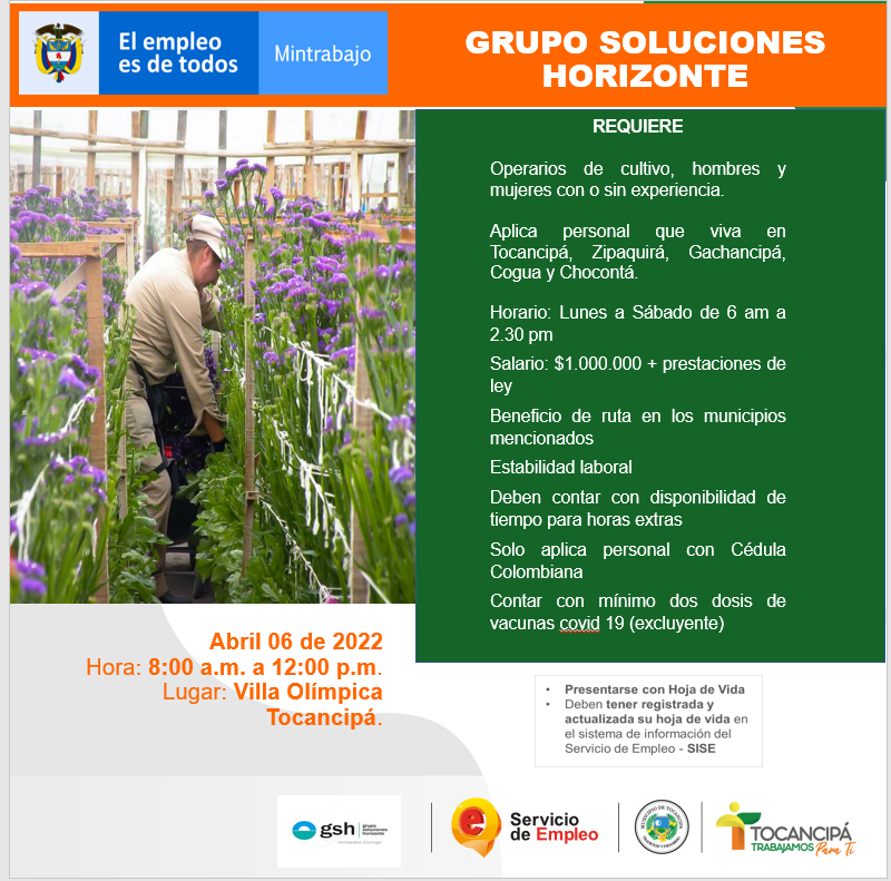 ⚠️Convocatoria de empleo este miércoles 6 de abril en la Villa Olímpica de Tocancipá desde las 8:00 a.m.
