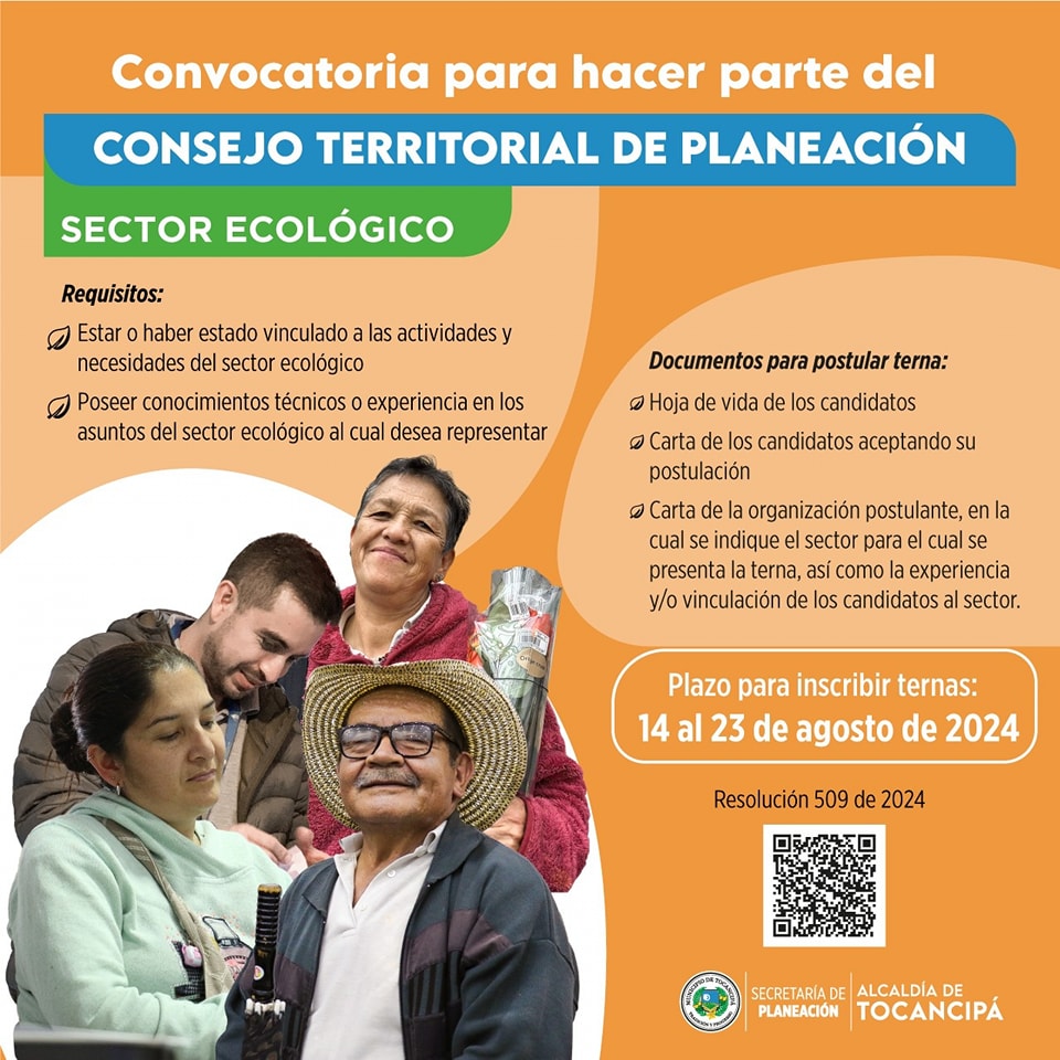 #Atención Representantes del sector ecológico del municipio, la Secretaría de Planeación abre convocatoria para ocupar un lugar en el Consejo Territorial de Planeación.