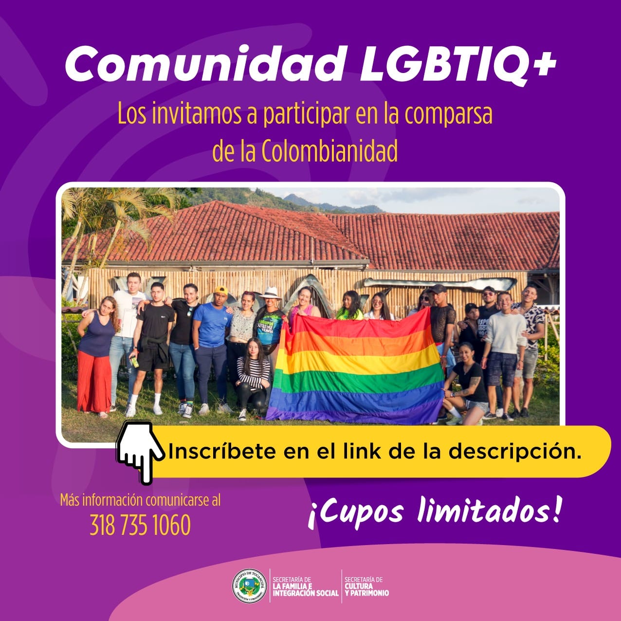 Desde nuestra Secretaría de Familia e Integración Social, extendemos una cordial invitación a toda la comunidad LGBTIQ , a inscribirse en el siguiente enlace para participar activamente en la Colombianidad.
