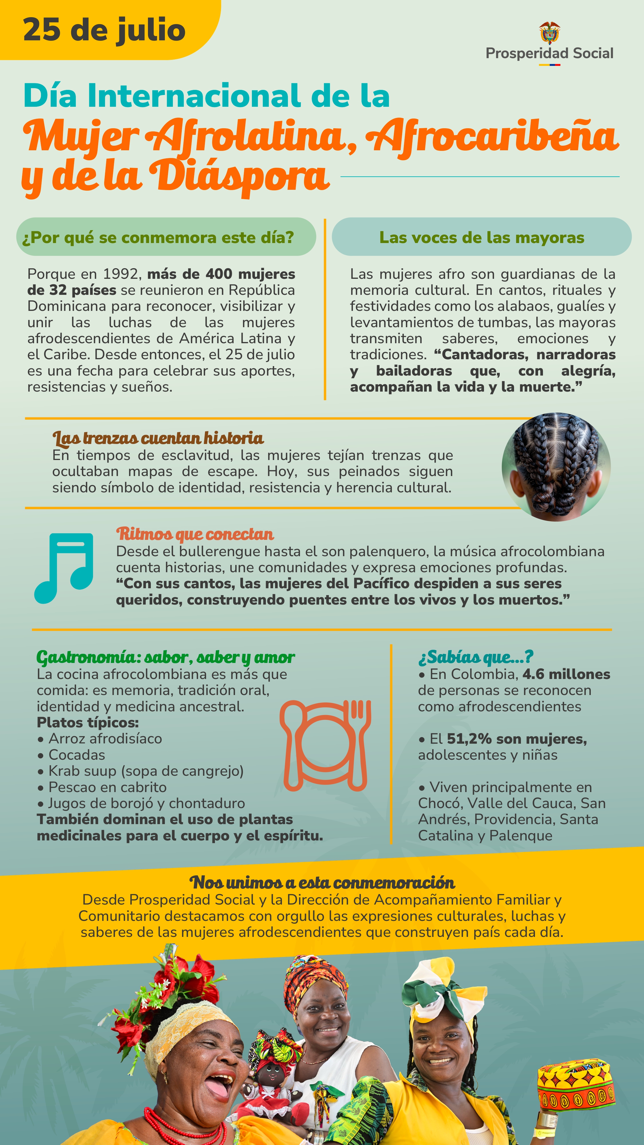 Cada 25 de julio recordamos la fuerza, resistencia y riqueza cultural de las mujeres afrodescendientes de América Latina y el Caribe. Desde sus cantos y trenzas hasta su cocina ancestral y sus saberes medicinales, son guardianas de la memoria y constructoras de identidad.