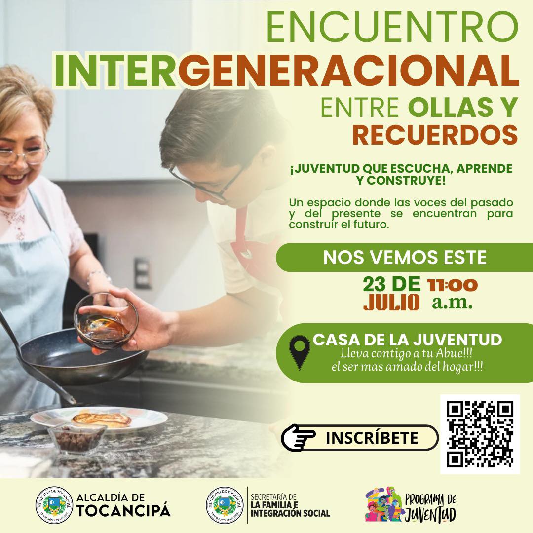 #Juventud | ¡En Tocancipá la juventud y la experiencia se unen! Te esperamos en el Encuentro Intergeneracional: Entre ollas y recuerdos, un espacio para aprender, compartir y construir juntos.