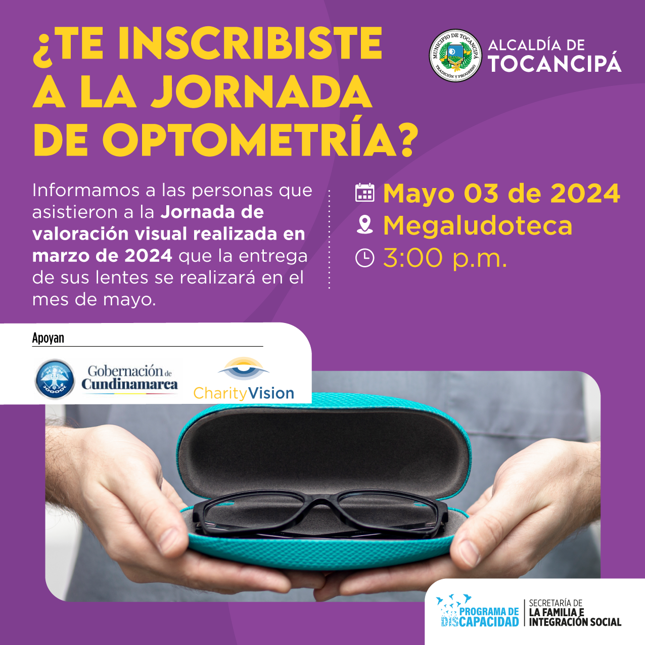 Estamos listos para la entrega de lentes, a los usuarios que recibieron la valoración visual en el mes de marzo.