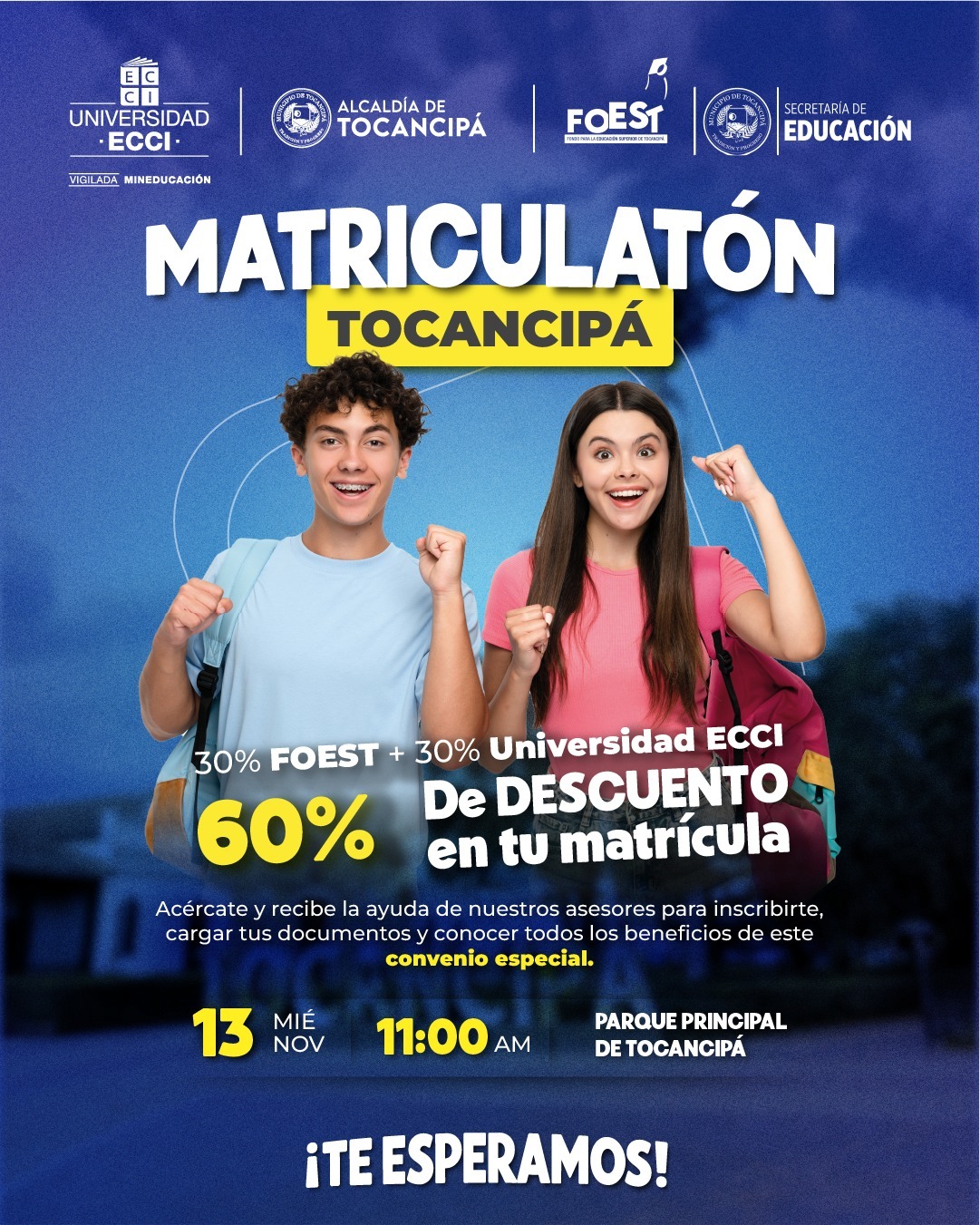 #Educación | ¡Atención, estudiantes tocancipeños! La Secretaría de Educación de Tocancipá, en alianza con la Universidad ECCI te invita a participar en la Gran Matriculatón Tocancipá.