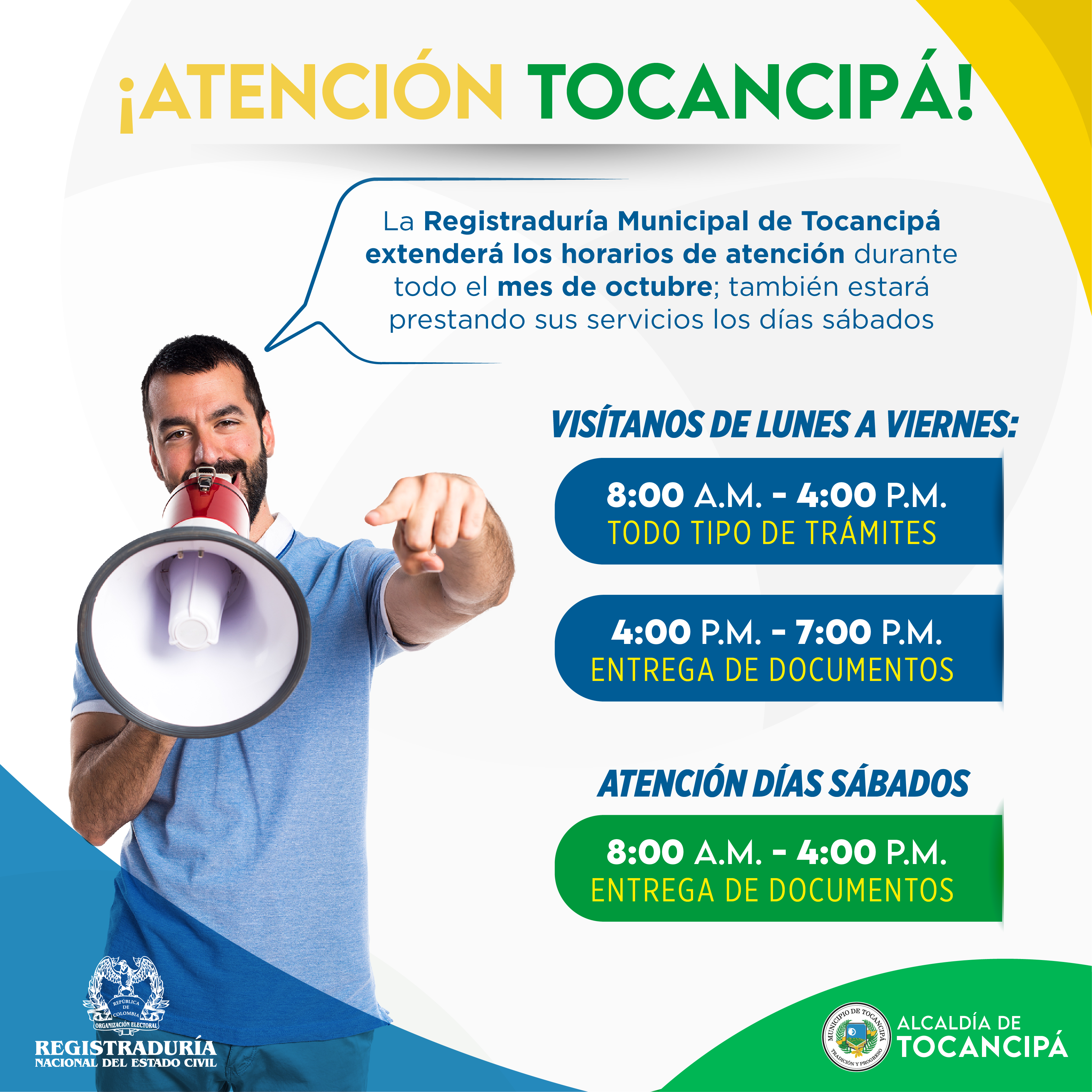 Compartimos con la comunidad los horarios extendidos de la Registraduría, para realizar trámites o recibir documentos.