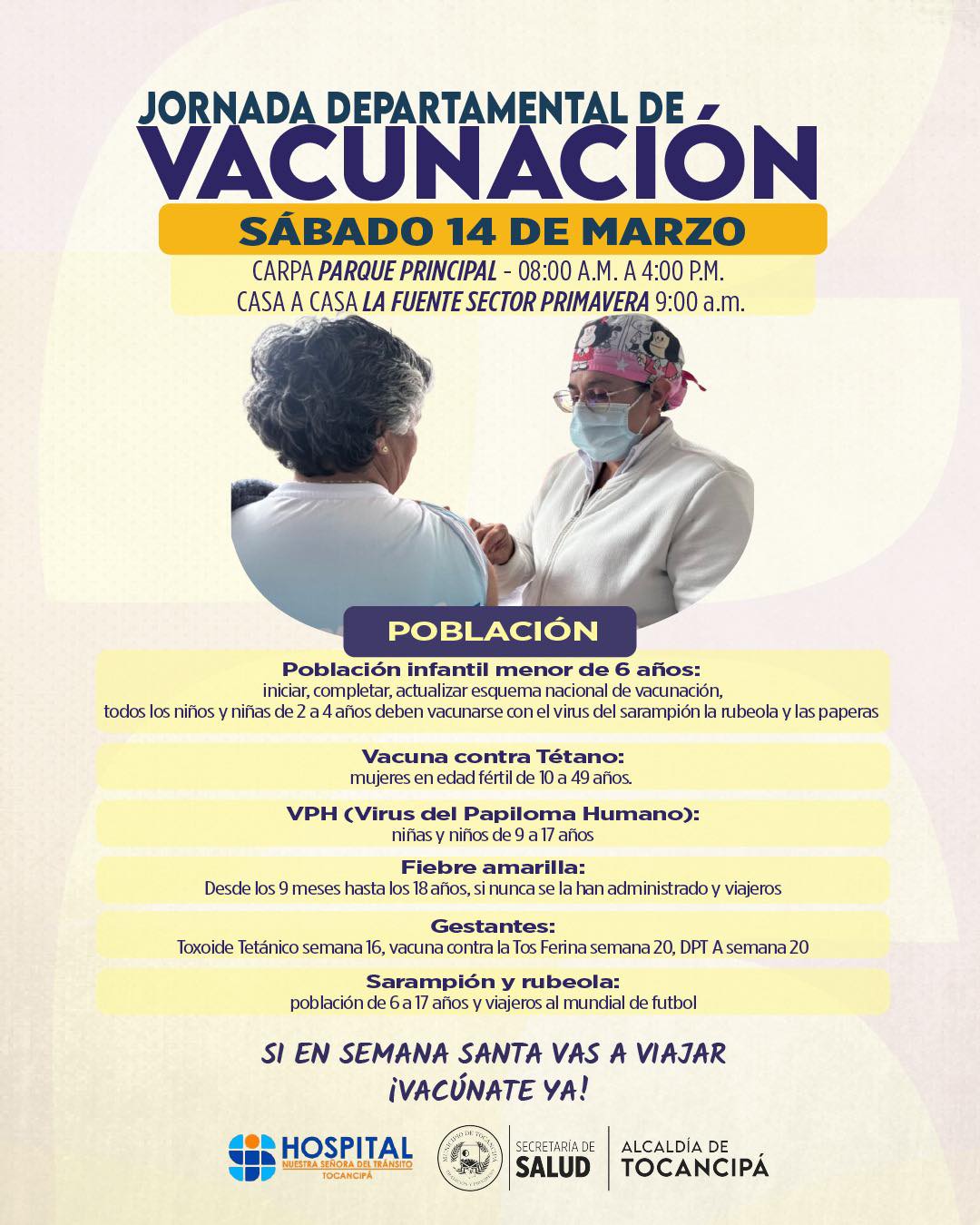 Tendremos jornada departamental de vacunación el próximo sábado 14 de marzo.