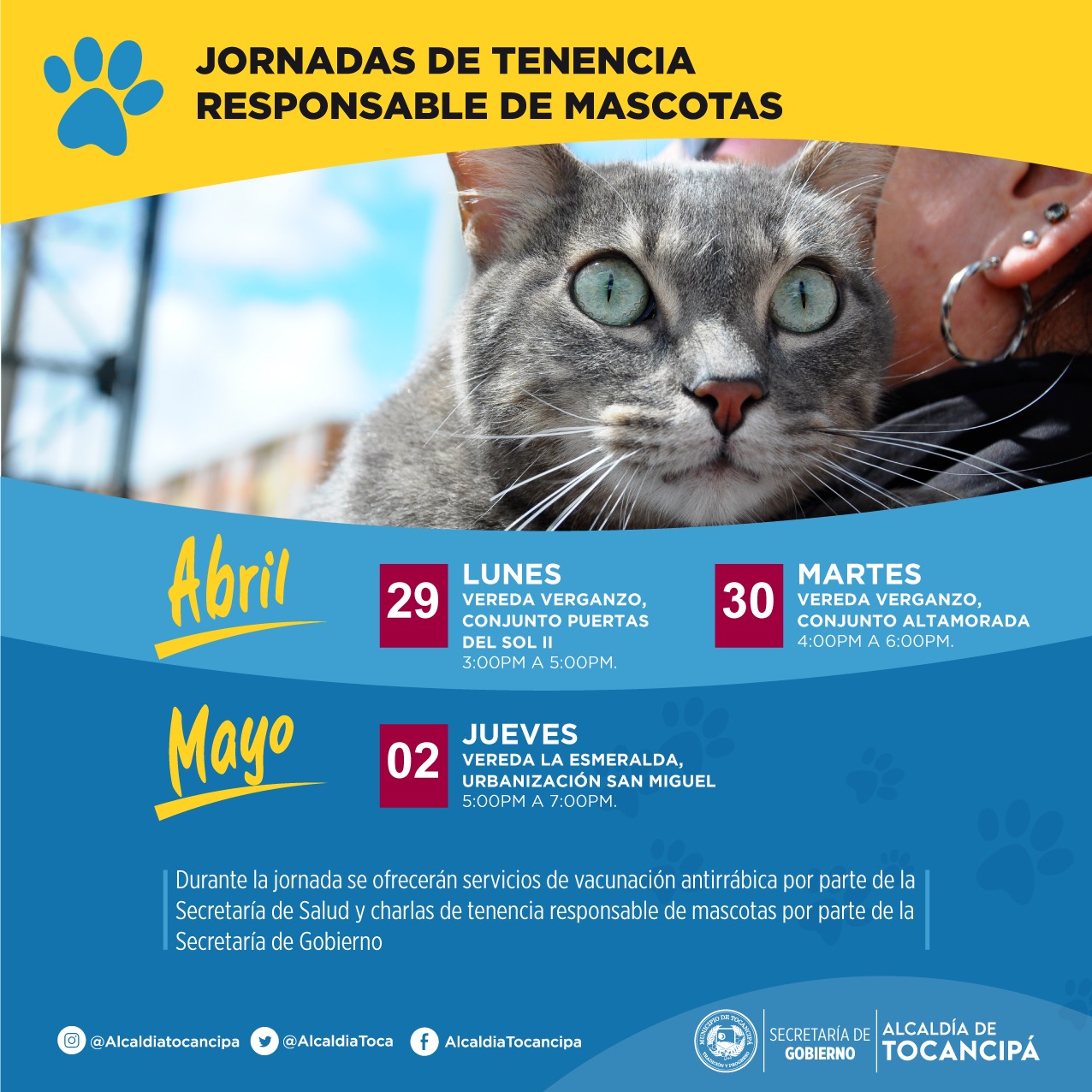 ☑️Estamos comprometidos con el bienestar de las mascotas🐕 🐈⬛, por esta razón lo invitamos a tener en cuenta las jornadas de 🔹tenencia responsable y 🔹vacunación antirrábica que se estarán desarrollando en las veredas 📍La Esmeralda, 📍Verganzo y conjunto📍 Puertas del Sol II.