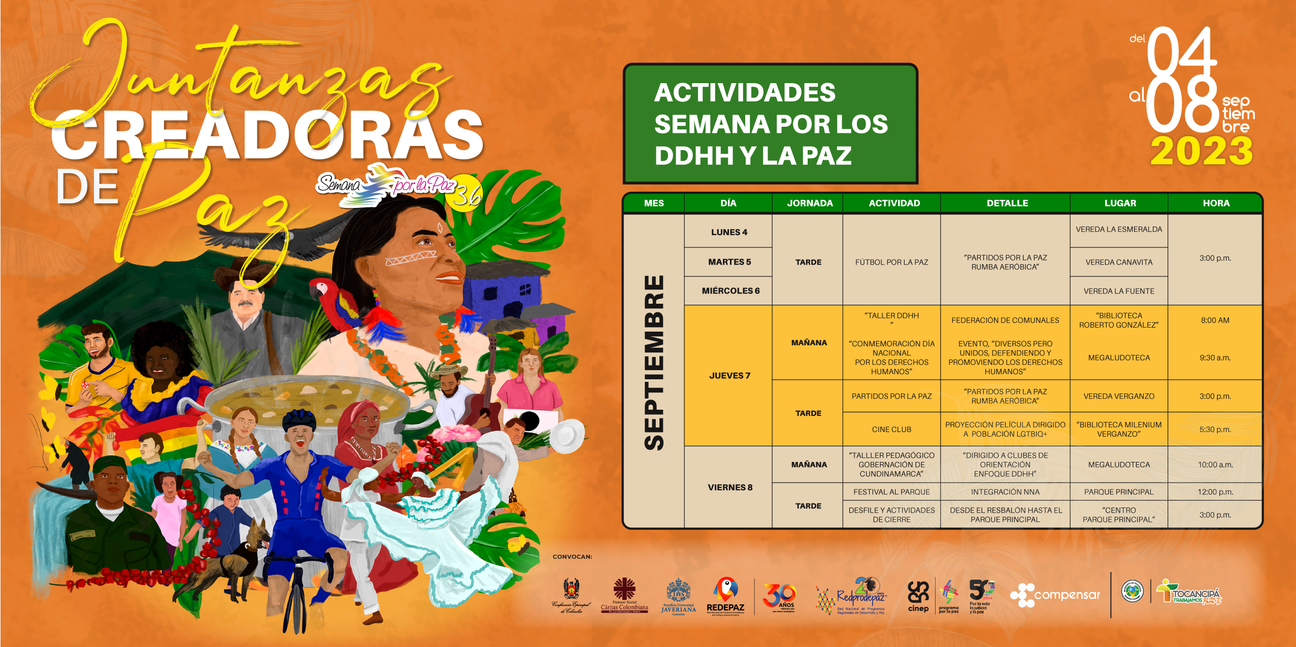 #TocancipáTerritorioSeguro || Cronograma de actividades de la 𝗦𝗘𝗠𝗔𝗡𝗔 𝗣𝗢𝗥 𝗟𝗔 𝗣𝗔𝗭 del 4 al 8 de septiembre 2023 en Tocancipá.#Tocancipá