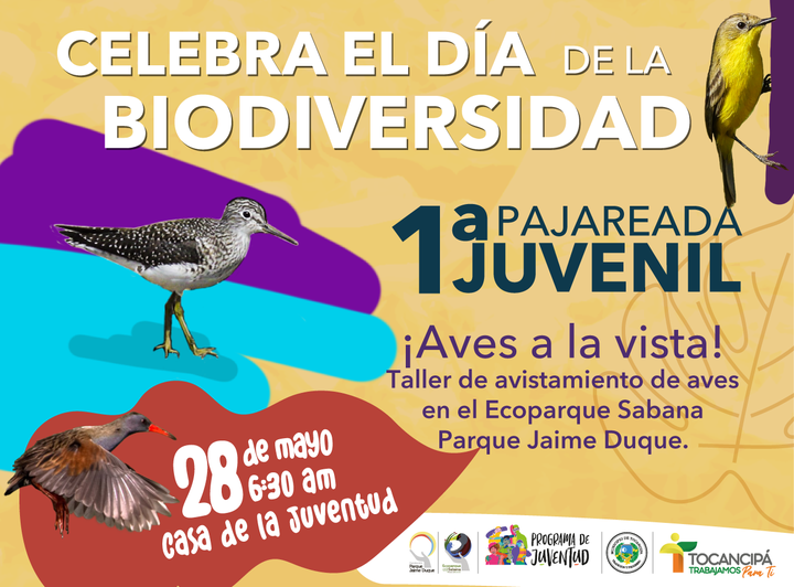 Nuestro Programa de Juventud en articulación con la Secretaría de Ambiente Tocancipá y la Fundación Parque Jaime Duque, te invitan a participar del taller de avistamiento de aves para conmemorar el 𝐃𝐢́𝐚 𝐈𝐧𝐭𝐞𝐫𝐧𝐚𝐜𝐢𝐨𝐧𝐚𝐥 𝐝𝐞 𝐥𝐚 𝐁𝐢𝐨𝐝𝐢𝐯𝐞𝐫𝐬𝐢𝐝𝐚𝐝.