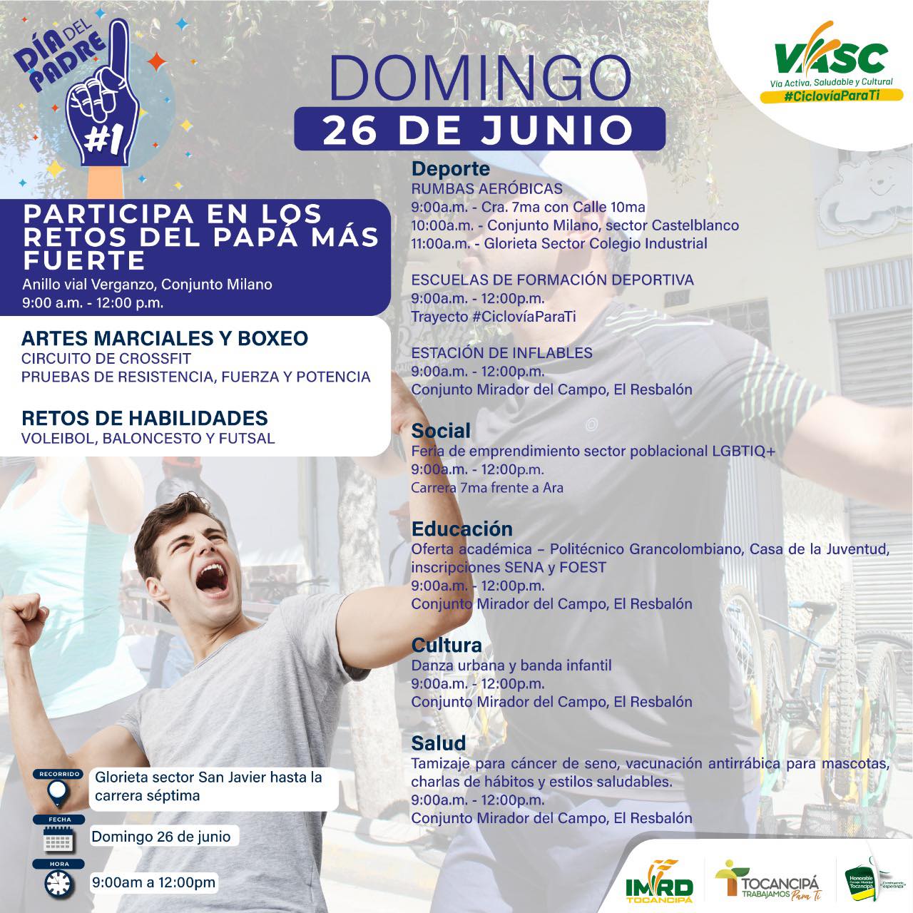 Este domingo 26 de junio entre las 9:00 a.m. y las 12:00 p.m. ¡Contaremos con un gran reto para el PAPÁ MÁS FUERTE!