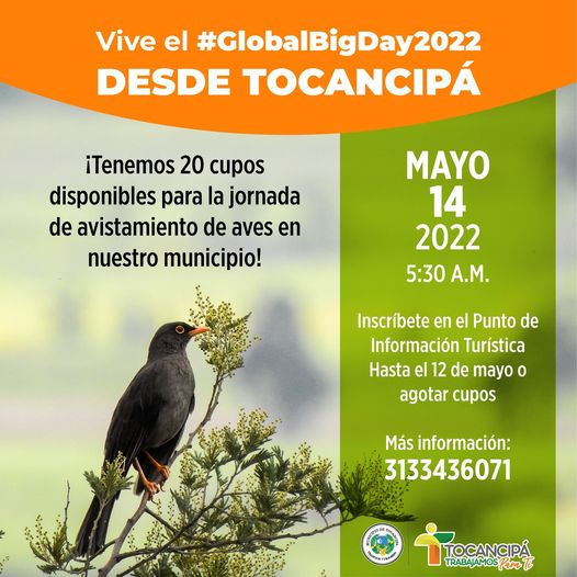 Desde Tocancipá nos unimos a la pajareada más importante del año, una oportunidad más para compartir y ser parte de la gran jornada de avistamiento de aves, para destacar la riqueza avifaunística de nuestro territorio.