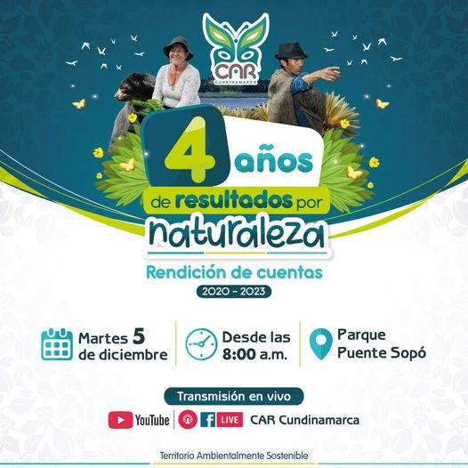 La Corporación Autónoma Regional de Cundinamarca - CAR invita a toda la comunidad a conectarse a la transmisión en vivo de la Rendición de Cuentas 2020-2023.