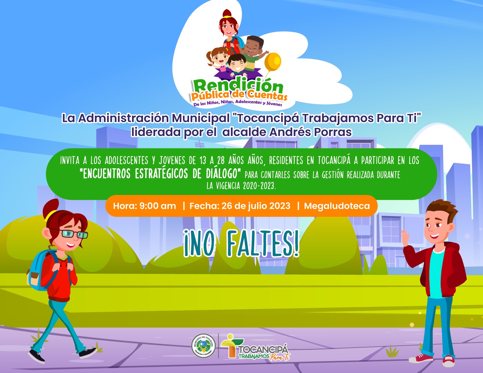 El Gobierno Municipal invita a los adolescentes de 13 a 17 años y jóvenes de 18 a 28 años a participar en los "Encuentros Estratégicos de Diálogo" en los que hablaremos sobre la gestión y los avances de nuestro Plan de Desarrollo "Tocancipá, Trabajamos Para Ti 2020 -2023”