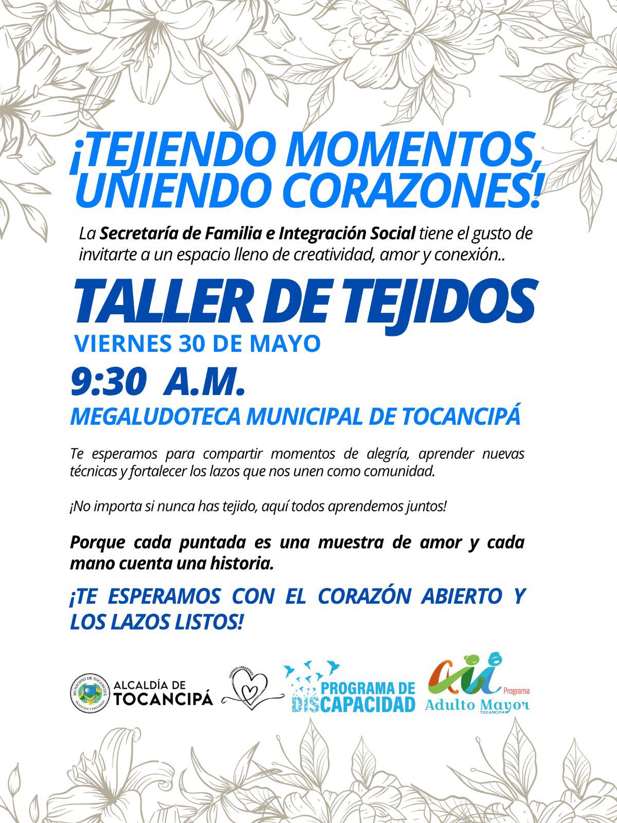 Te esperamos con los brazos y el corazón abiertos este viernes 30 de mayo a las 9:30 a.m. en la Megaludoteca. No olvides ser puntual, traer tu encendedor (candela) y unas tijeras. Vamos a compartir, crear y disfrutar juntos como una gran familia. Será un encuentro muy especial, ¡No te lo pierdas! #EstamosRecuperandoElProgreso #TocancipáCiudadDeOportunidades