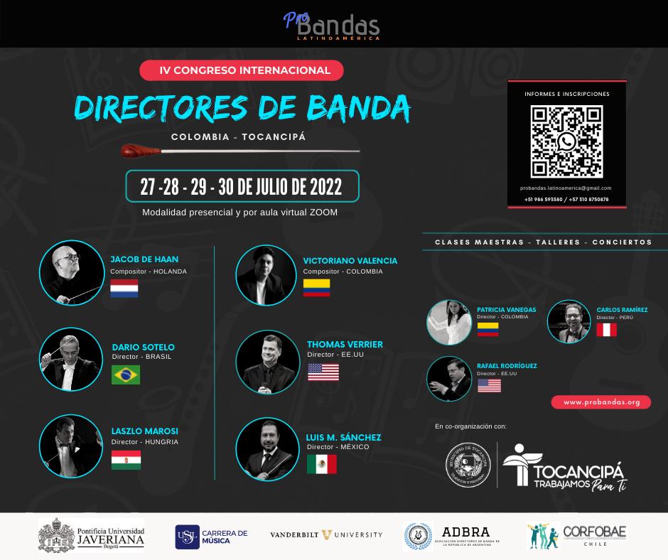Tocancipá será la sede del 𝗜𝗩 𝗖𝗼𝗻𝗴𝗿𝗲𝘀𝗼 𝗜𝗻𝘁𝗲𝗿𝗻𝗮𝗰𝗶𝗼𝗻𝗮𝗹 𝗱𝗲 D𝗶𝗿𝗲𝗰𝘁𝗼𝗿𝗲𝘀 𝗱𝗲 B𝗮𝗻𝗱𝗮, organizado por Pro-Bandas con el apoyo del Gobierno Municipal, a desarrollarse los días 28, 29 y 30 de julio con la participación de Maestros de diversas Naciones: 🇳🇱 🇺🇸 🇨🇴 🇧🇷 🇭🇺 🇲🇽 🇵🇪