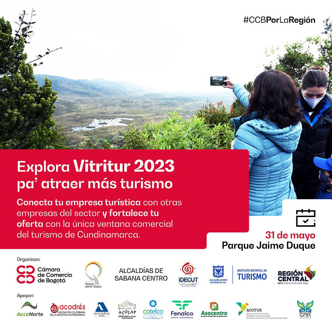 La Cámara de Comercio de Bogotá y un grupo de aliados estratégicos del sector turismo te invitan a la vitrina turística de Cundinamarca - VITRITUR 2023.