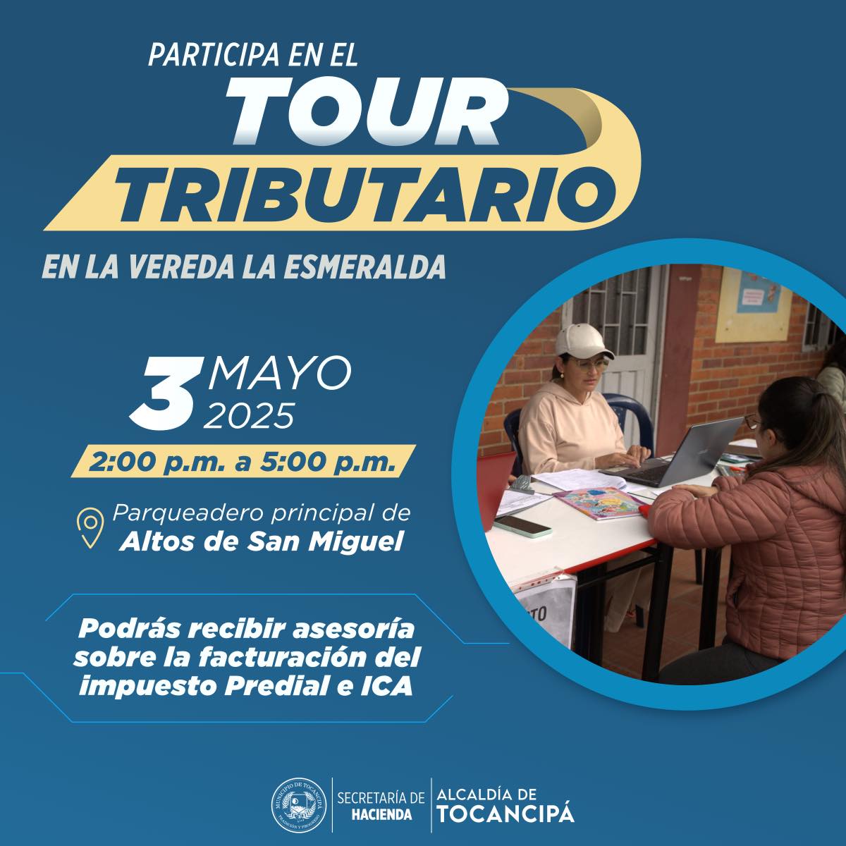 #Hacienda | La Alcaldía de Tocancipá, a través de la Secretaría de Hacienda, visitará la vereda La Esmeralda para asesorar a los ciudadanos sobre la facturación del Impuesto predial e ICA.
