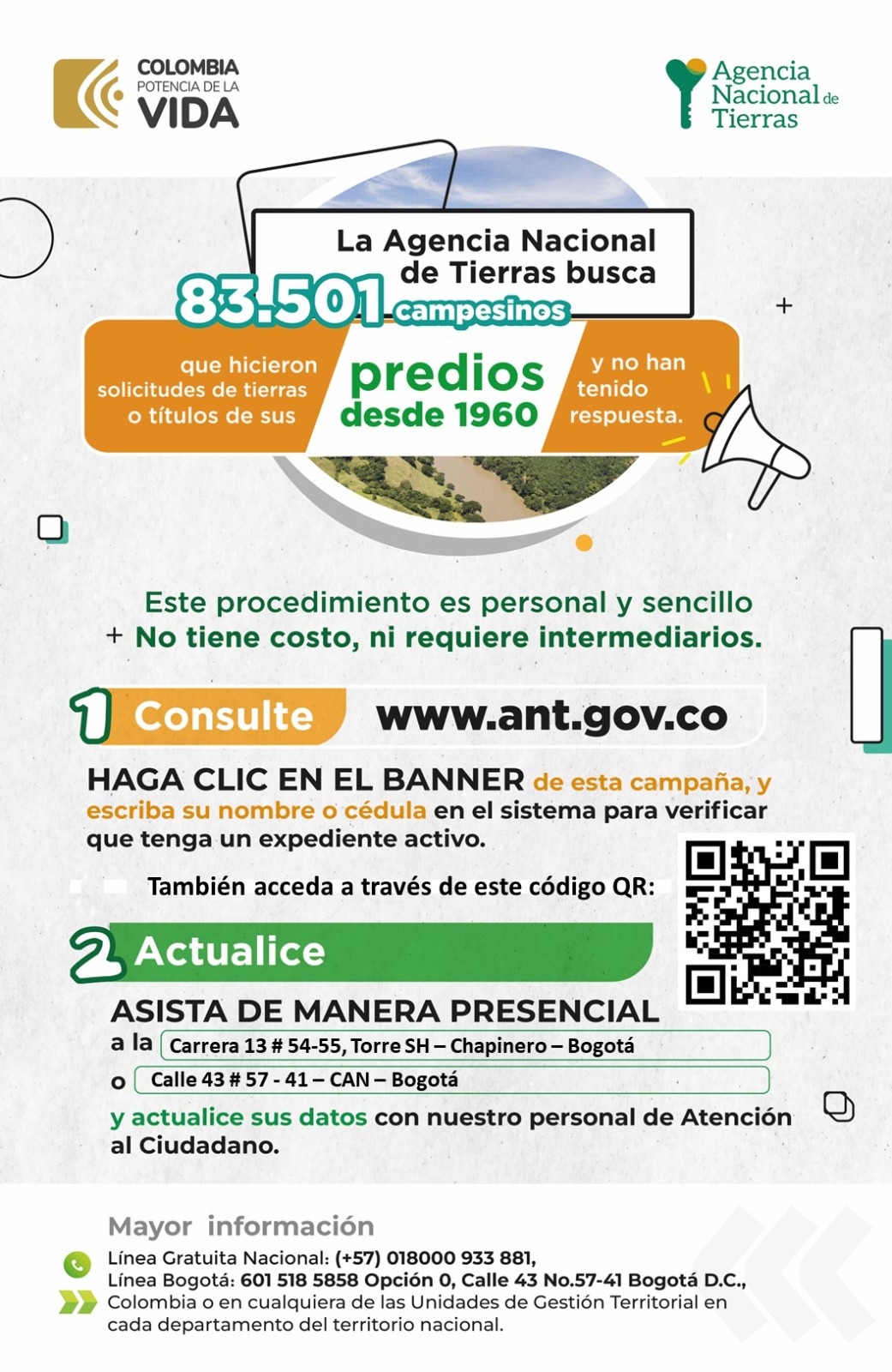 La Agencia Nacional de Tierras busca 83.501 CAMPESINOS