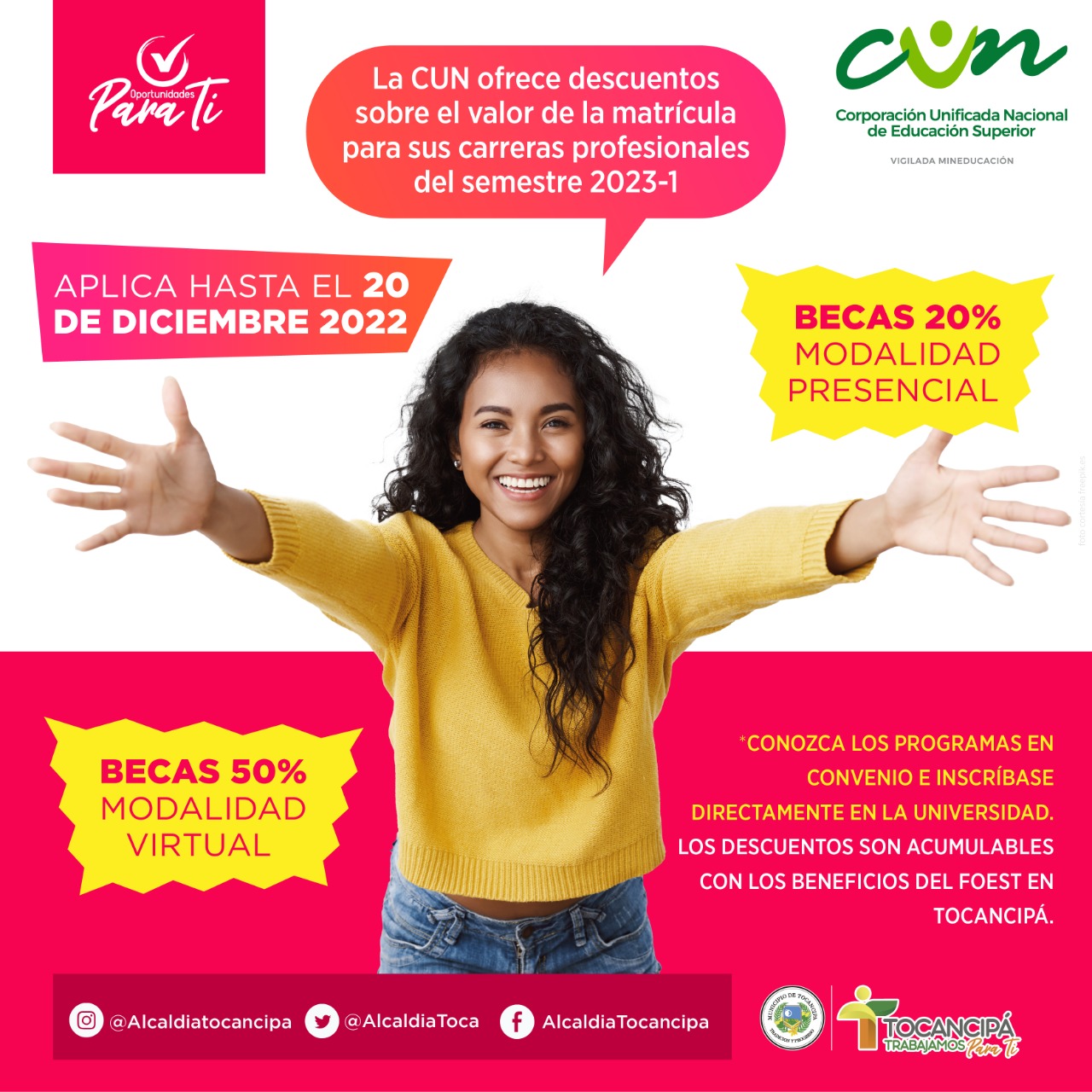 Aplica a los descuentos que ofrece la CUN y los beneficios del FOEST para estudiar una carrera prof