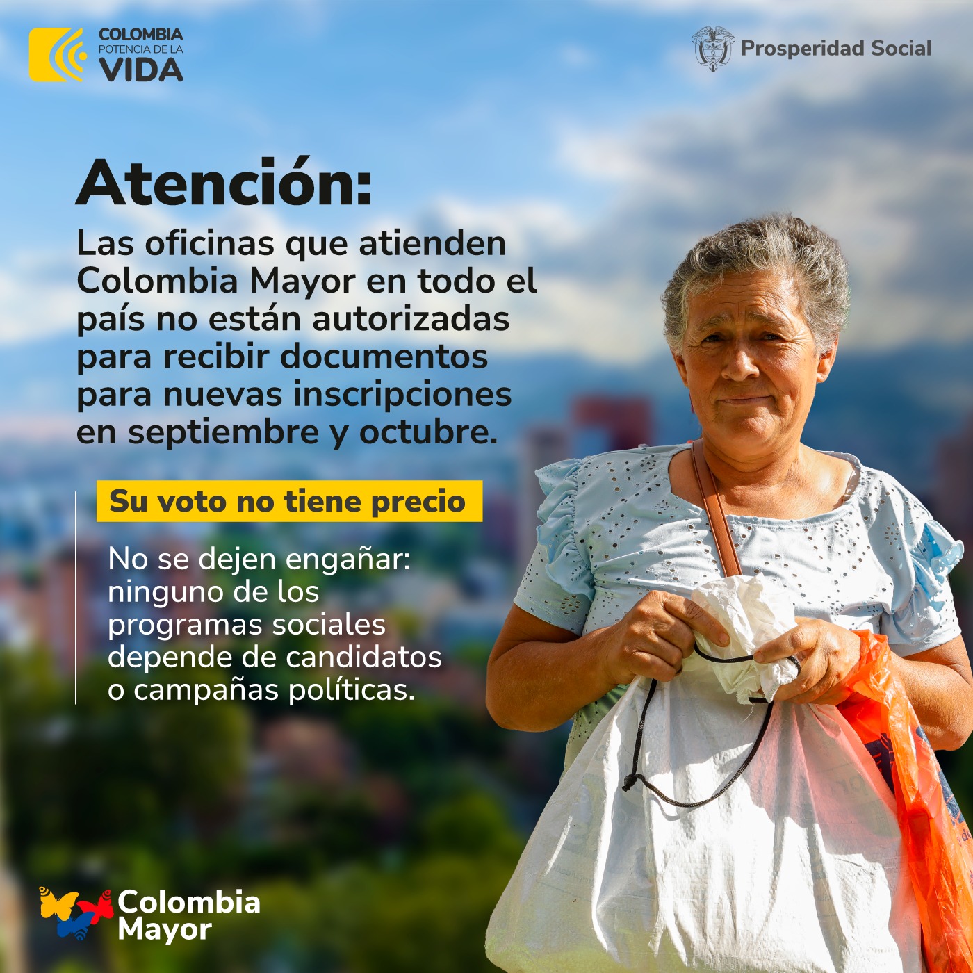 El programa Colombia Mayor comparte esta información para que no se dejen engañar. Recuerde que cualquier inquietud sobre este programa podrá resolverla a través de la línea de atención: