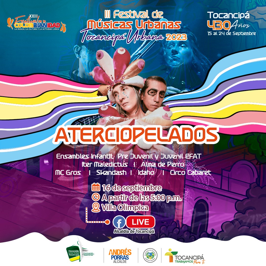 ¡Aterciopelados la banda más emblemática del rock colombiano llega por primera vez a Tocancipá al III Festival de Músicas Urbanas, en donde se presentarán las mejores bandas de Tocancipá y la provincia!
