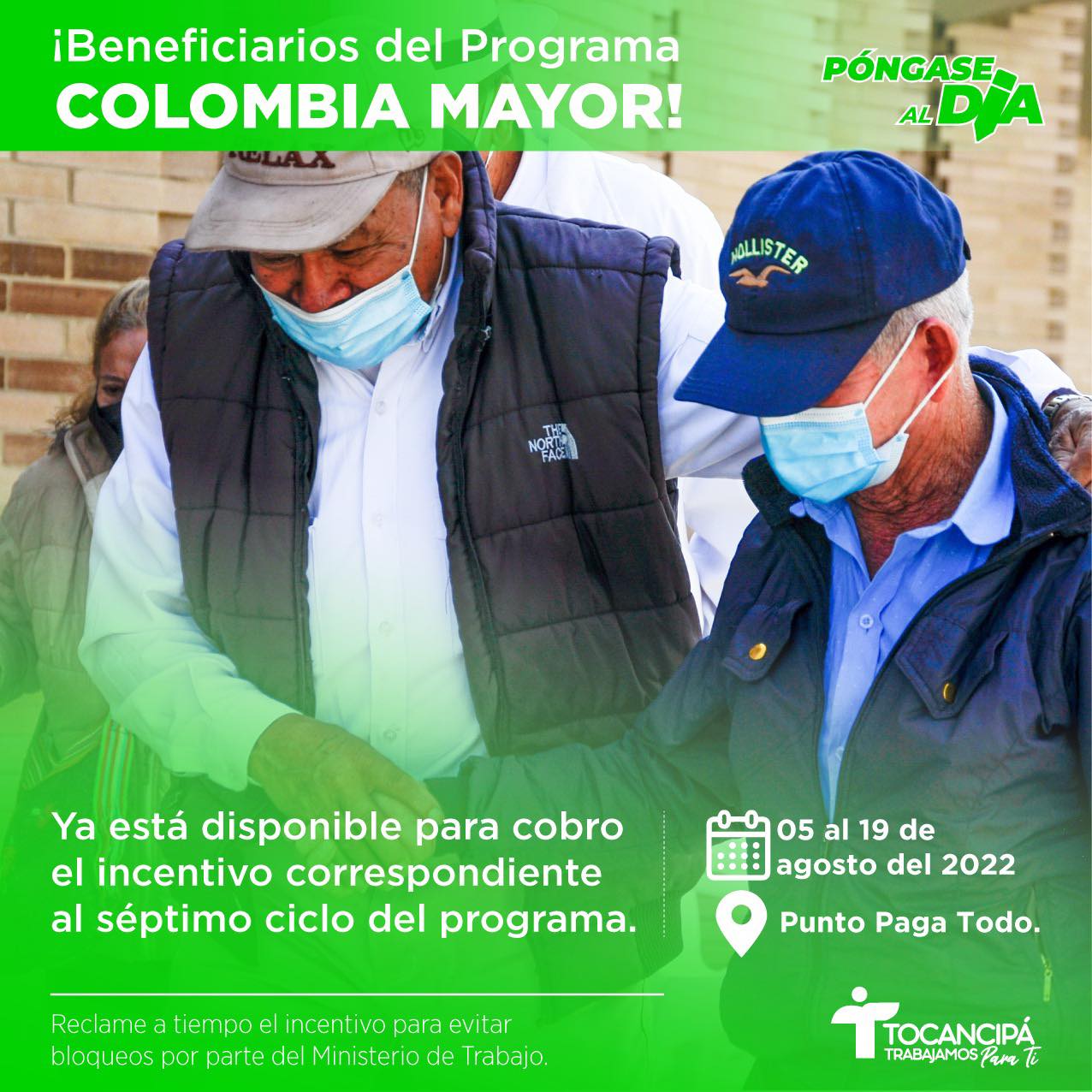 El programa Colombia Mayor informa a los beneficiarios que el pago de subsidios estará disponible para su cobro a partir del 05 de agosto y estará disponible para su cobro hasta el próximo 19 de agosto de 2022.