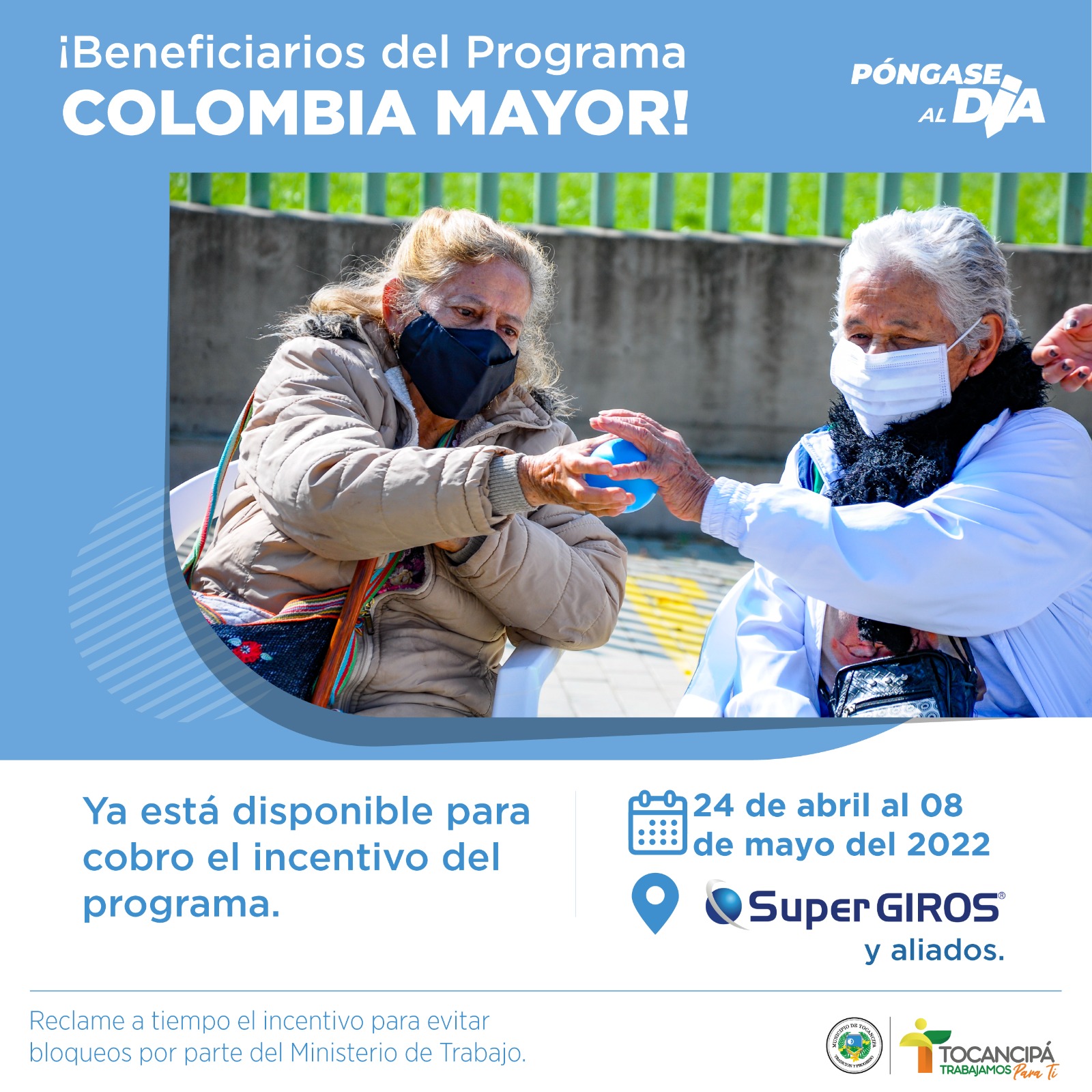 El programa Colombia Mayor informa a los beneficiarios que el pago de subsidio estará disponible para su cobro hasta el próximo 08 de mayo, en los puntos de Super Giros y aliados.