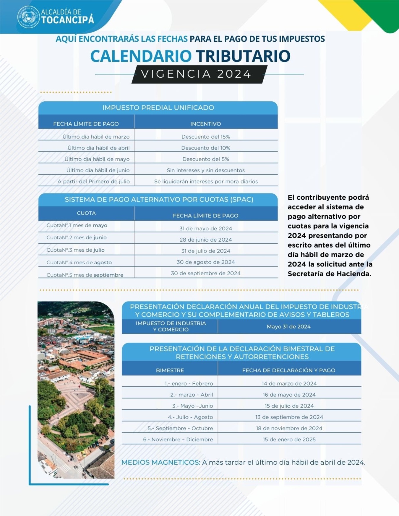 Atención Contribuyentes, compartimos el Calendario Tributario, para la vigencia 2024.