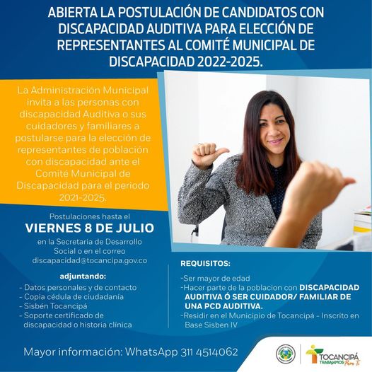Invitamos a personas con discapacidad auditiva y/o sus cuidadores a postularse al Comité Municipal de Discapacidad.