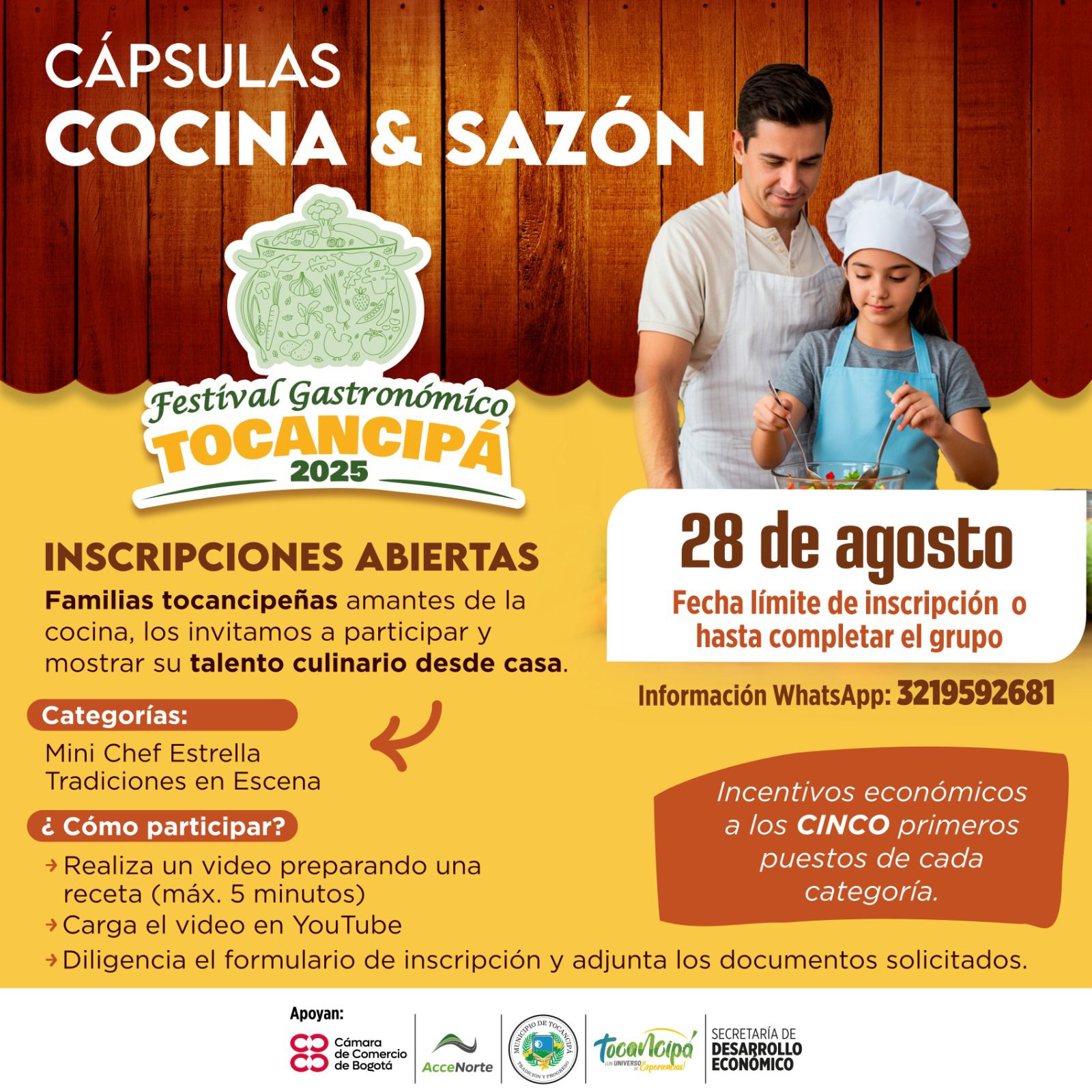 #FestivalGastronómico2025 | ¡Ya está abierta la convocatoria del concurso “Cápsulas Cocina & Sazón”! del X Festival Gastronómico Tocancipá 2025.