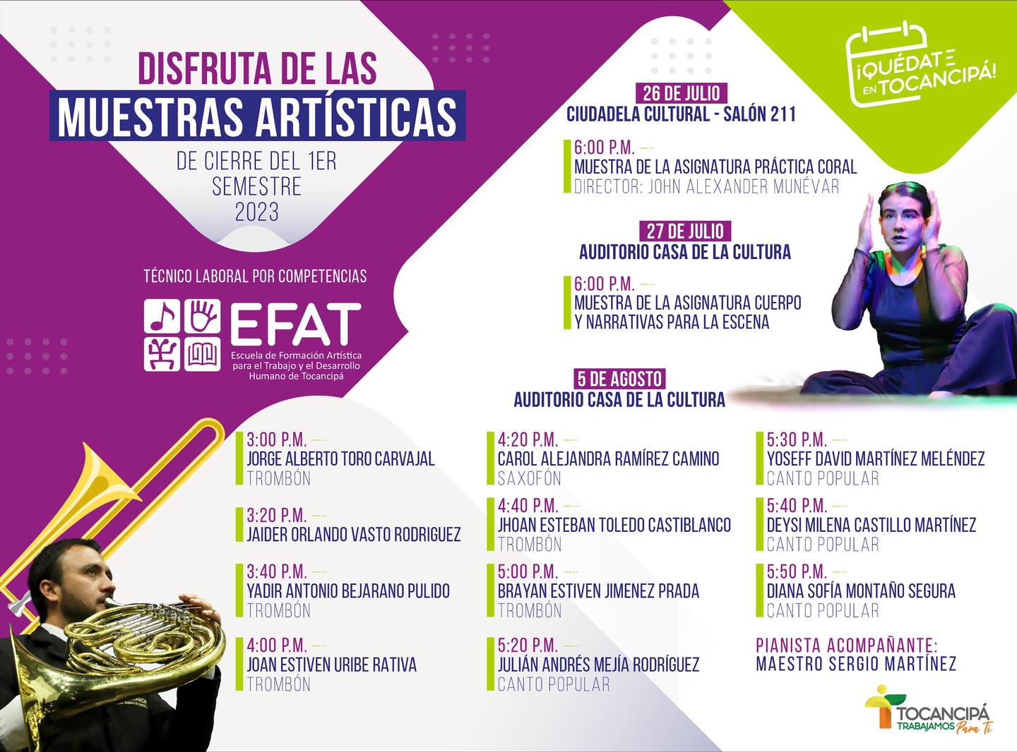 Te invitamos a disfrutar de las muestras artísticas de cierre del 1er semestre del Técnico Laboral por Competencias de la EFAT.