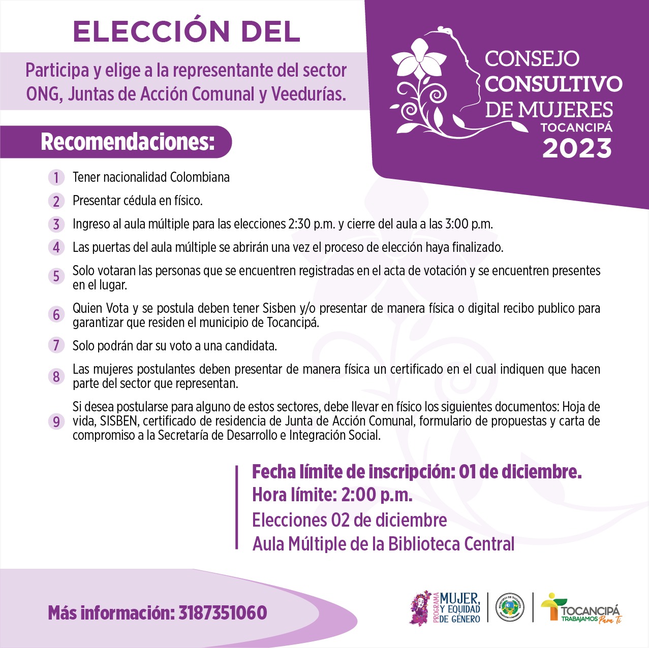 Elegir o ser elegida nos permite continuar trabajando juntas por los derechos de las mujeres del municipio. Participa en las Elecciones del Consejo Consultivo de Mujeres 2023.