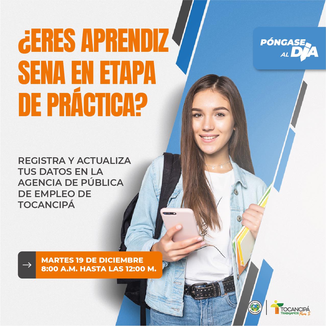 La Agencia Pública de Empleo de Tocancipá está buscando aprendices Sena en etapa productiva de los siguientes programas: Área Administrativa, Calidad, Producción, Logística, SST, HSE, Ambiental, Recursos Humanos y Contabilidad.