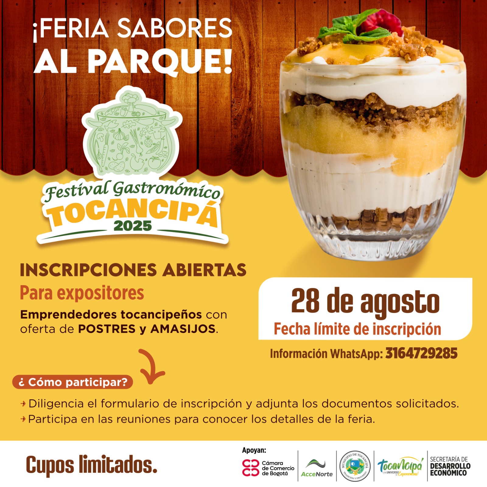 #FestivalGastronómico2025 | Convocatoria abierta para emprendedores en las categorías de postres y amasijos ¡Feria Sabores al Parque! del X Festival Gastronómico Tocancipá 2025.