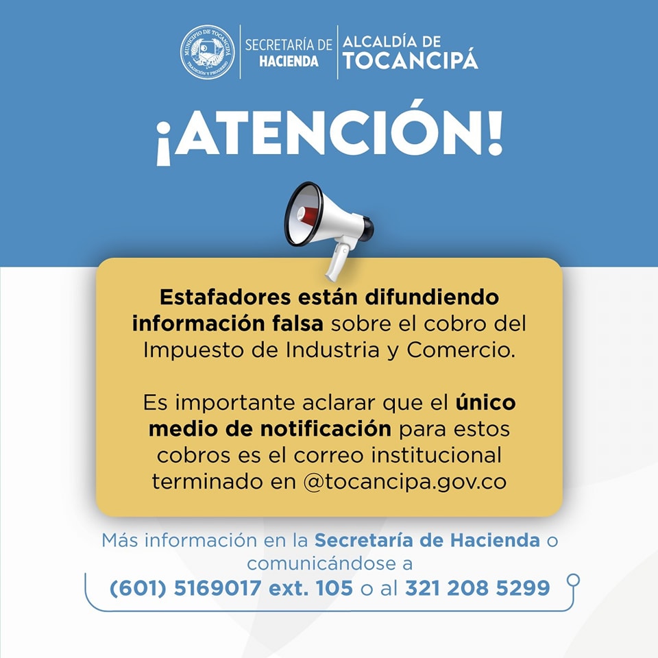 Informamos a la comunidad que circula una información falsa a través de correos electrónicos y llamadas telefónicas, relacionadas con el cobro del Impuesto de Industria y Comercio.