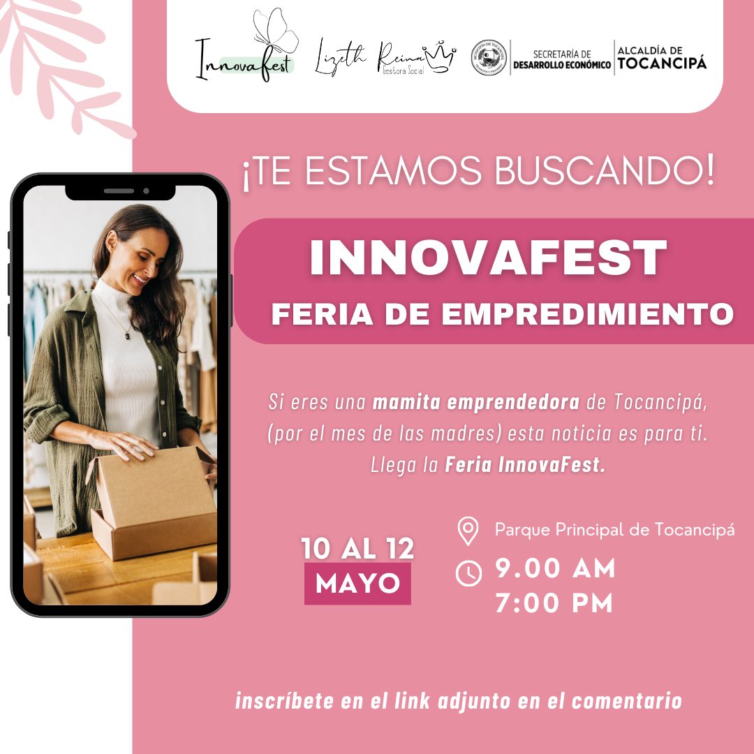 Del 10 al 12 de mayo, llega Innova Fest a #Tocancipá y no te puedes perder la oportunidad de mostrar tus productos y establecer negociaciones que permitan fortalecer tu emprendimiento.