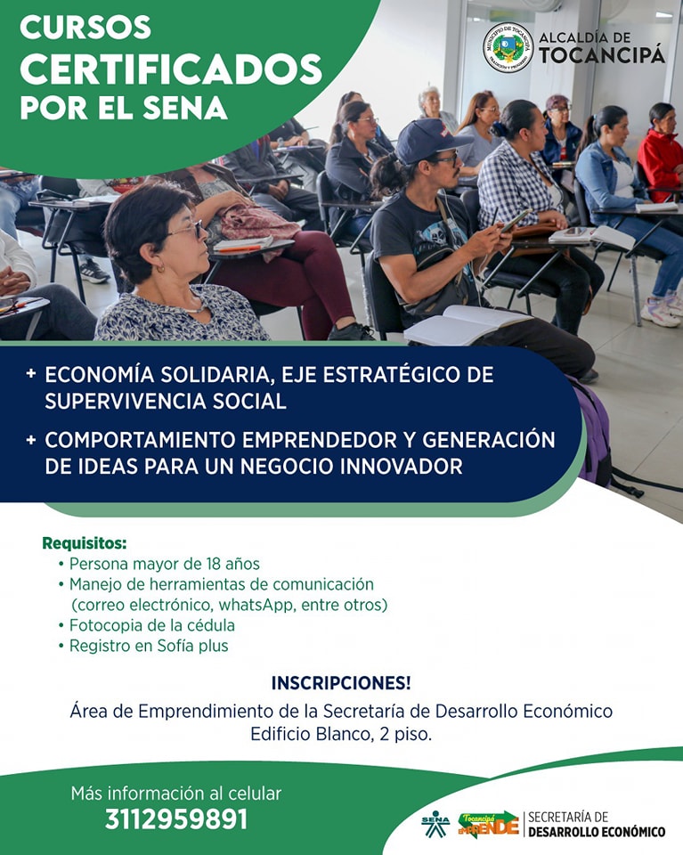 Abrimos inscripciones en los cursos del SENA en: Economía Solidaria y Comportamiento Emprendedor, donde podrán descubrir nuevas oportunidades.