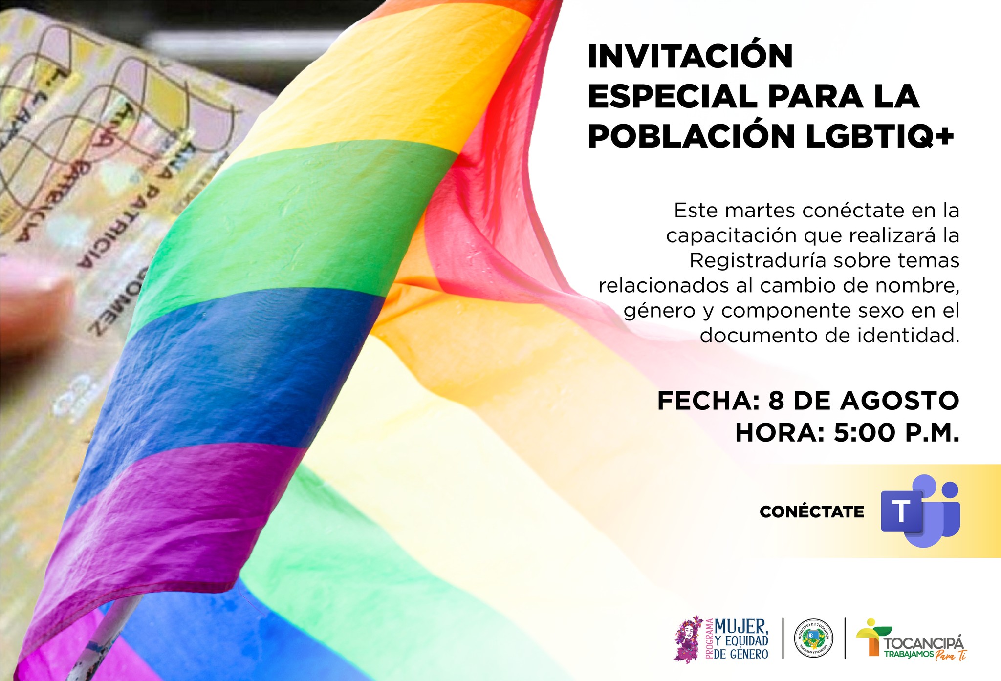 Desde el Programa Mujer y Equidad de Género extendemos esta importante invitación para las personas del sector LGBTIQ a participar en la capacitación que realizará en compañía de la Registraduría sobre cambio de nombre, género y componente sexo en el documento de identidad.
