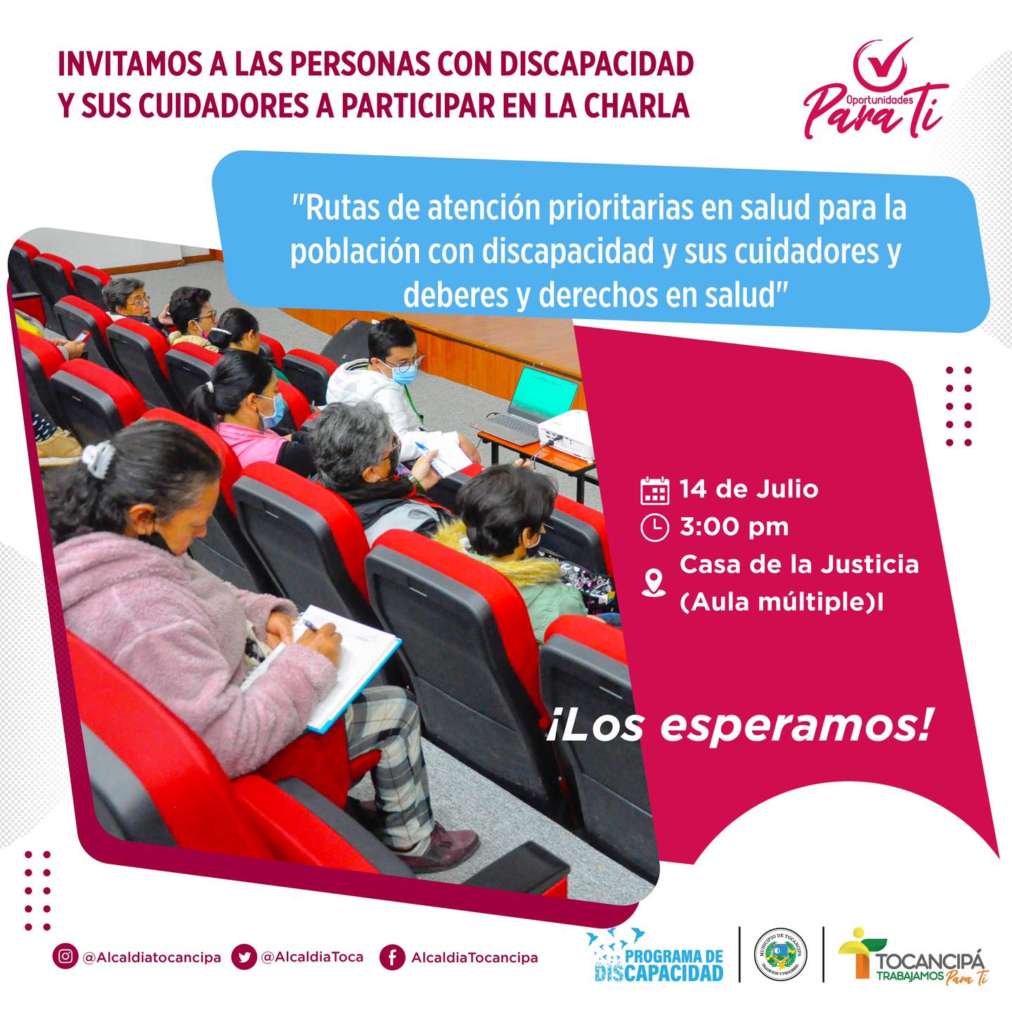 Nuestro Programa de Discapacidad invita a las personas con discapacidad y sus cuidadores a participar en la charla: rutas de atención prioritarias en salud.