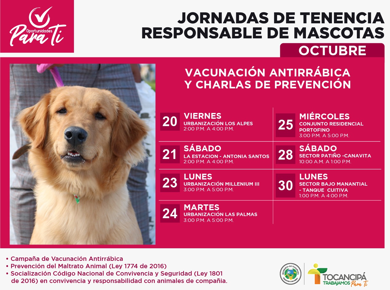 ¡Agéndate y participa! con tu mascota en las 𝐉𝐨𝐫𝐧𝐚𝐝𝐚𝘀 𝐝𝐞 𝐓𝐞𝐧𝐞𝐧𝐜𝐢𝐚 𝐑𝐞𝐬𝐩𝐨𝐧𝐬𝐚𝐛𝐥𝐞 𝐝𝐞 𝐌𝐚𝐬𝐜𝐨𝐭𝐚𝐬 del mes de octubre.